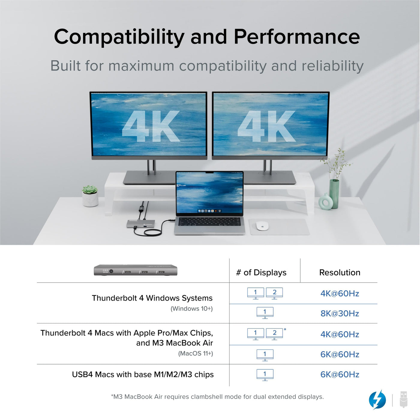 Experience The Full Power Of Usb4 With The Plugable Usb4 And Thunderbolt 4 Hub (Usb4-Hub3A) With 60W Host Charging. The Usb4-Hub3A Stands Out For Its Complement Of Features, Including Up To 60W Charging For The Host Laptop, 3X Usb4 / Thunderbolt 4 Ports-Each Capable Of Up To 40Gbps, And Up To 15W Charging For Your Connected Peripherals. And, Despite The Hubs Compact Size, There Is Also A Usb-A Port (10Gbps) For A Legacy Device. Drive Dual 4K Monitors Or A Single 8K Monitor With Thunderbolt 4. Take Advantage Of The Included Usb-C To Hdmi Adapter For A Convenient Hdmi Connection Right Out Of The Box. Fast And Reliable Wins The Race Built Around A Goshen Ridge Chipset From Intel, The Usb4-Hub3A Gives You Access To Everything Usb4 Has To Offer. That Means High Speed-Each Port Is Capable Of Data Transfer Speeds Up To 40Gbps, The Maximum Rate Available Through A Thunderbolt 4 Or Usb4 Port. But Data Isnt The Only Thing Flowing Through These Ports. Thanks To Intelligent Power Handling, Youll Also Get Up To 15W Of Charging Power For Your Connected Devices, Evenly Distributed Across The Ports To Ensure A Balanced Load. Usb4 And More Because The Usb 4 Hub Is Thunderbolt Certified And Built Around A Goshen Ridge Chipset, Your Usb-C, Thunderbolt 3, Thunderbolt 4, And Usb4 Devices Are Supported, Too. And Dont Worry If Youre Not Sure What Your System Supports, The Usb4-Hub3A Will Detect Your Computers Capabilities And Adjust Accordingly (An In Essence Becomes A Thunderbolt Splitter) The Beauty Of 8K Is On Display Dont Limit Yourself To The Confines Of A Little Laptop Screen. With This Multiport Hub, Connect Up To Two 4K 60Hz Displays Or One 8K 30Hz Display To A Usb4 Or Thunderbolt 4 Pc Or A Thunderbolt 3 Or Usb4 Mac. It Even Comes With A Usb-C To Hdmi 2.0 Adapter To Make Connecting That Second Screen All The Easier. Its Worth Noting That External Display Support Is Dependent On Host Computers Capabilities.