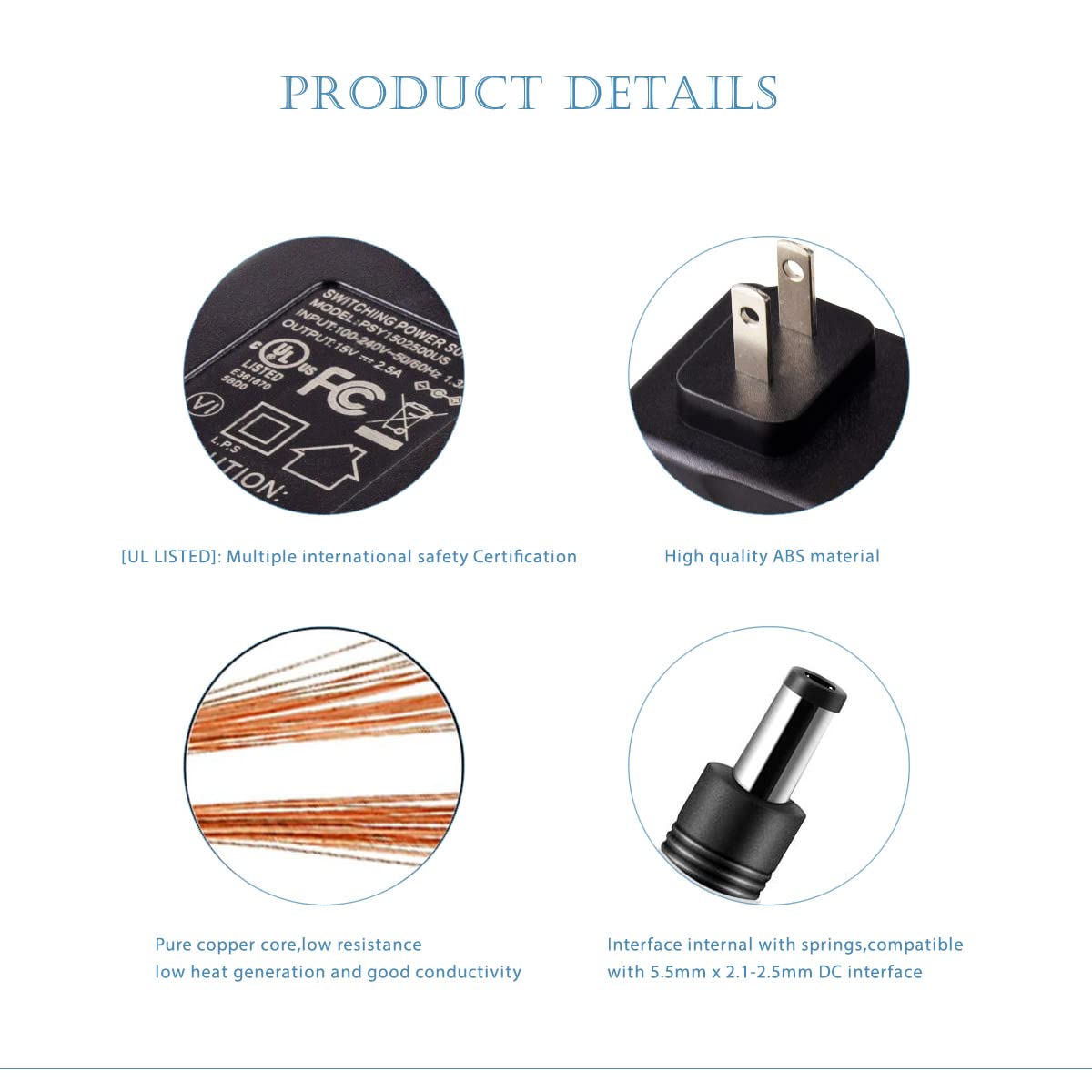 Portable Power Station Charger Adapter, Fanlide 15V 2.5A Power Supply Adapter Charger Compatible With 150-200W Portable Power St