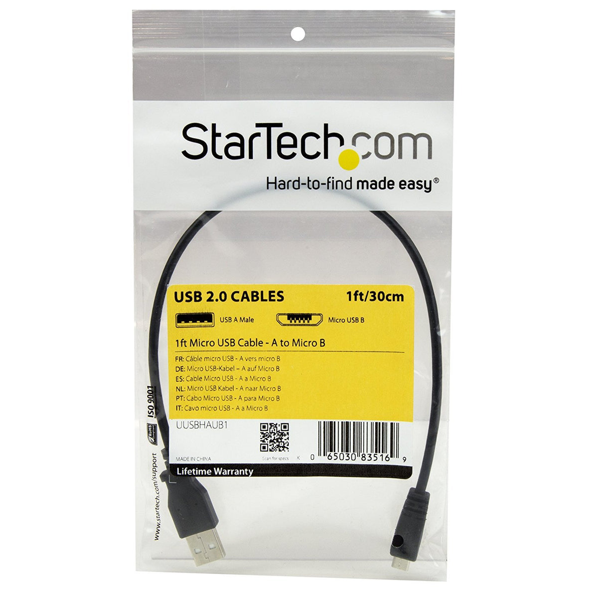 Startech.Com 1 Ft. (0.3 M) Usb To Micro Usb Cable - Usb 2.0 A To Micro B - Black - Micro Usb Cable (Uusbhaub1)