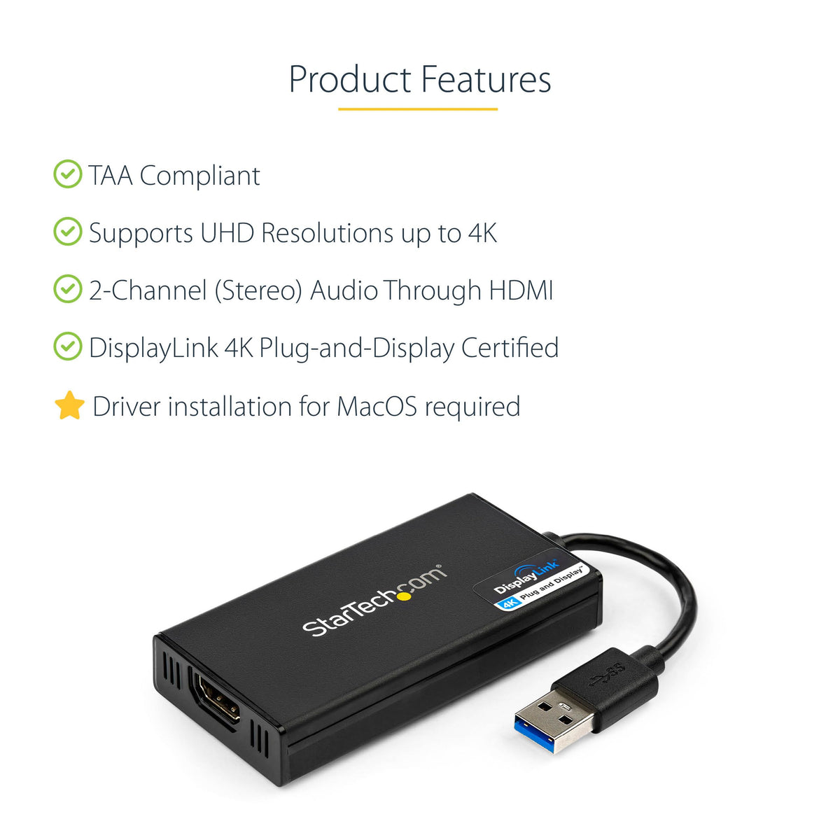 Startech.Com Usb 3.0 To Hdmi Adapter, 4K 30Hz Uhd, Usb To Hdmi Display Adapter, External Adapter For Mac & Windows, Taa