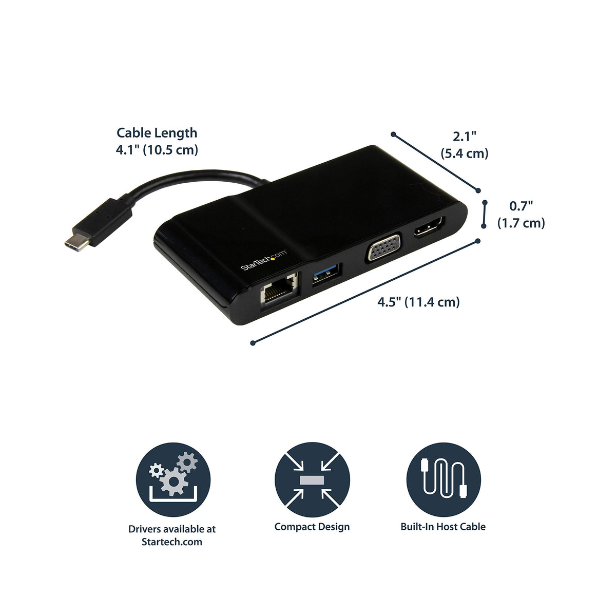 Startech.Com Usb-C Multiport Adapter - Usb-C Travel Dock With 4K Hdmi Or 1080P Vga, Gigabit Ethernet, 5Gbps Usb-A 3.0 - Disconti