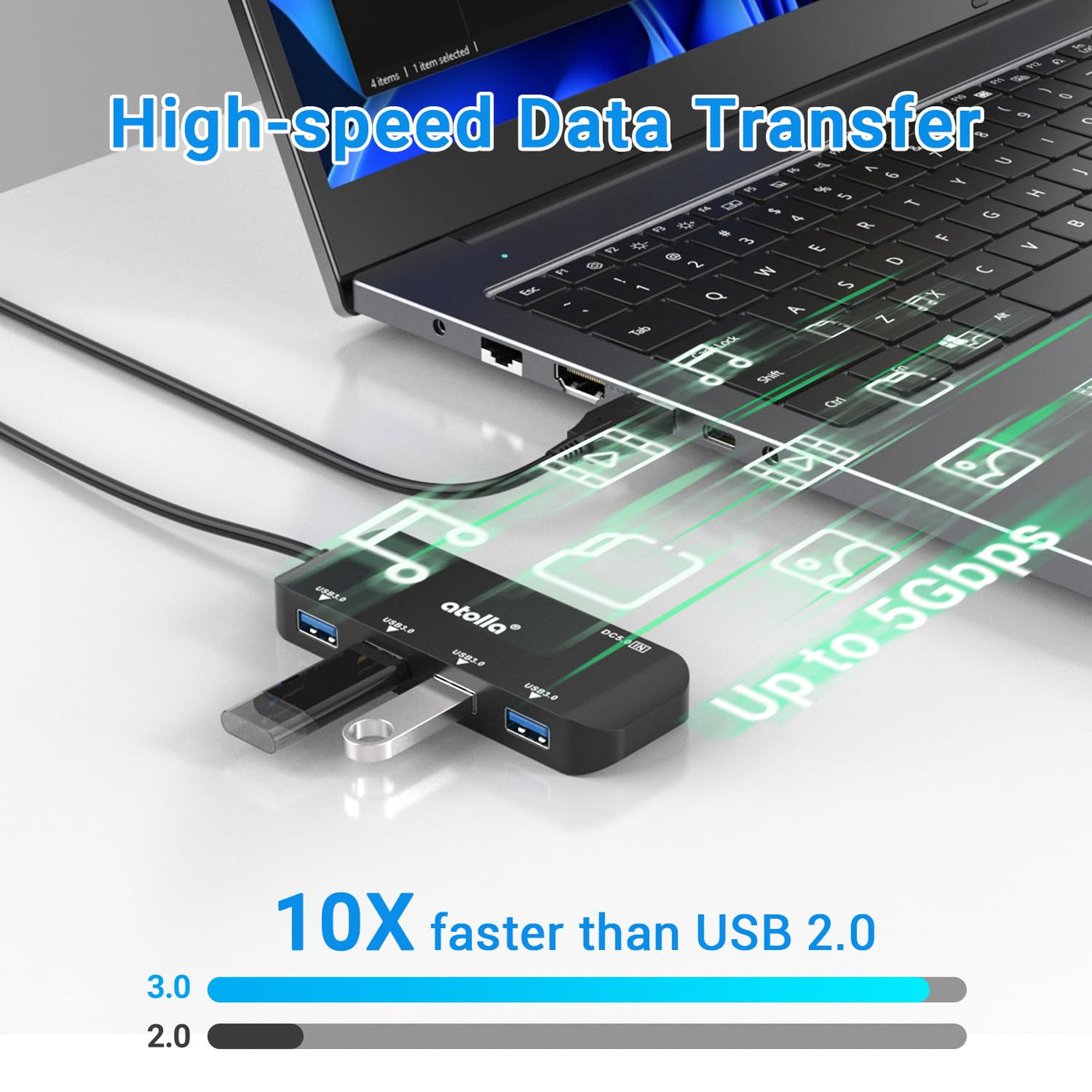 Usb Hub, 4-Port Usb 3.0 Hub With 2Ft Cable, Ultra-Slim Data Expander - Compatible With Windows, Mac, Linux Laptops & Pcs