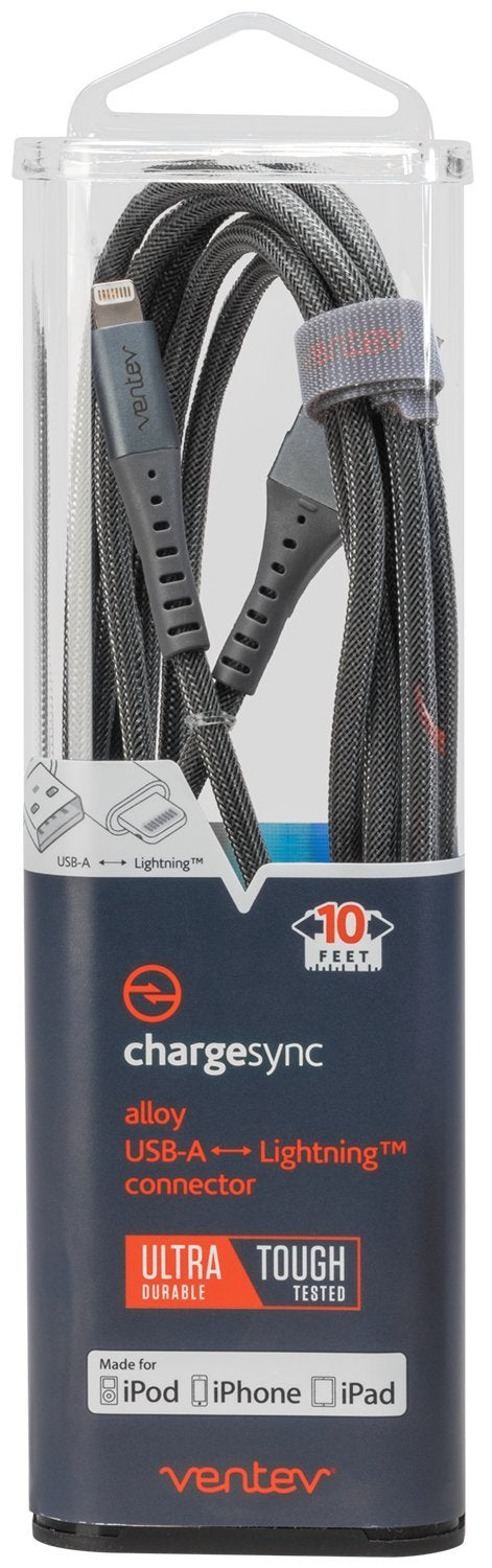 Ventev Chargesync Apple Lightning Cable | Rapid Charging To 2.4A/12W At Max Rates, Mfi Certified, Brushed Aluminum Housing, No-F