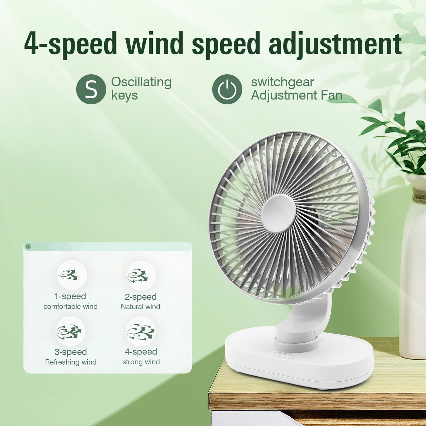 Wixboshu Oscillating Desk Fan,4000Mah Rechargeable Portable Desk Fan, 6.5 Inch Small Desk Fan, 4 Speeds Wind Quiet Fan Personal