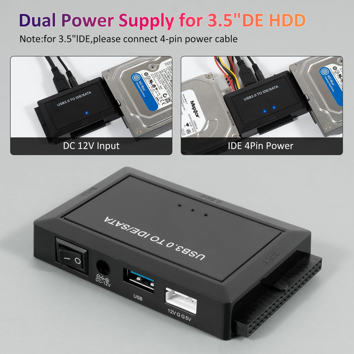 Usb 3.0 To Ide+Sata Adapter, Usb 3.0 Cable, 4Pin Power Cable Warm Note:For New Hard Drive, Please Go To ''Disk Management'' To Initialize It First, And Then Your Hard Drive Can Be Recognized,Note: 4Pin Power Cable Is Designed For 3.5 Ide Drive, Sata Drives Are Not Applicable And Some Ide Hard Drive Is Old, You Need To Set A Jumper To Turn On The Disk(Set The Master Disk And The Slave Disk