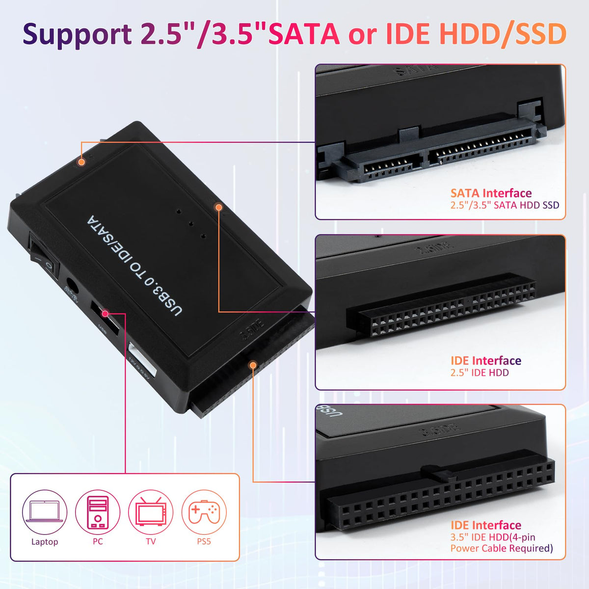 Zwwlre Usb 3.0 To Sata Adapter Hard Disk Adapter Cable Ide To Sata Adapter Universal 2.5/3.5 Hdd/Ssd 40 Pin Hard Drive Adapter H