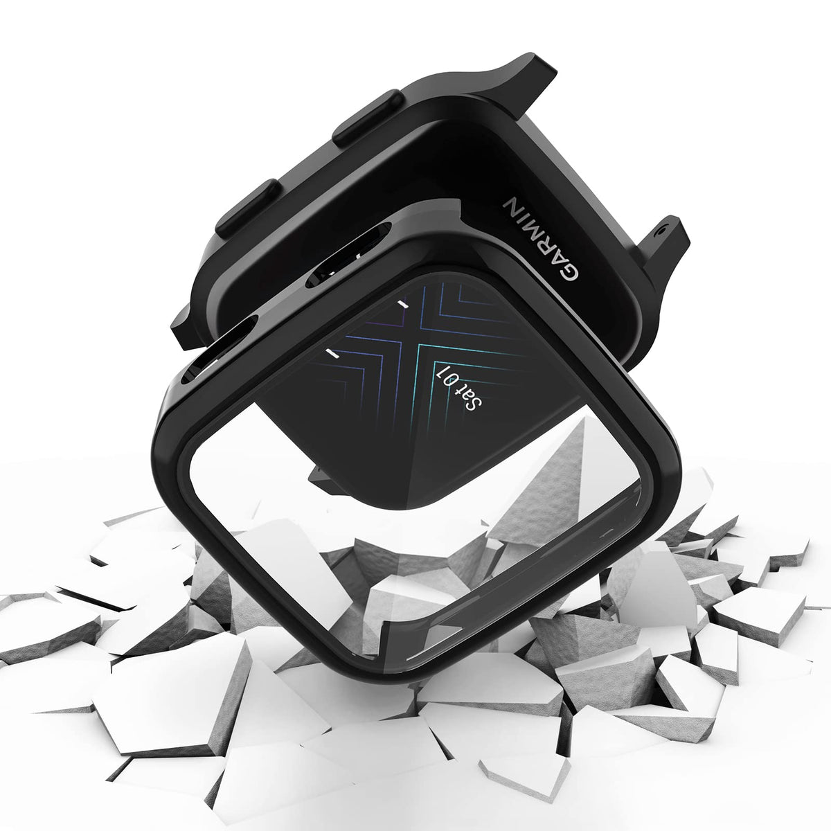 2 Packs Case Compatible With Garmin Venu Sq Screen Protector Built In 9H Tempered Glass, Nahai Hard Pc Cover Bumper All Around A