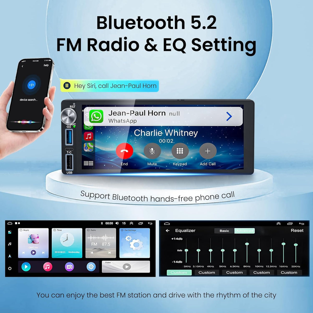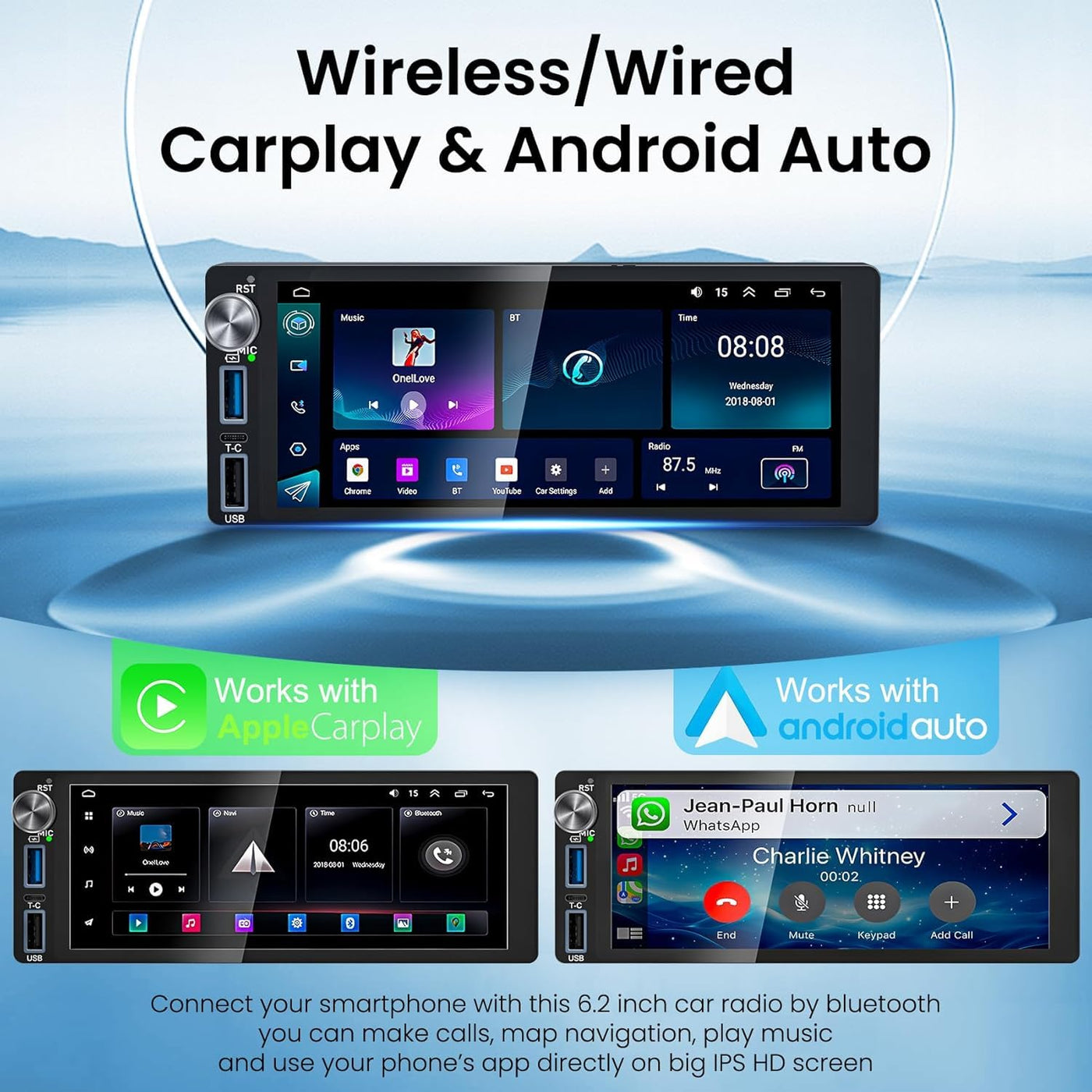 6.2 Inch Car Stereo Radio For Dodge & Chrysler & Jeep (1990-2000) 1. Android 13.0 Operating System 4G Ram & 64G Rom 2. Support Wireless/Wired Apple Carplay & Android Auto 3. Wifi Connect: Built-In Wifi Module, Can Connect To Internet By Wifi Hot Spot, Download App To Watch Online Video Etc. 4. Gps Navigation: Built-In Navigation Module, Support On-Line Off-Line Navigation, Free Navigation Map 5. Bluetooth Function: Built-In Bluetooth Module, Support Bluetooth Phone Connect, Handsfree For Calling Or Bluetooth Music Play 6. Rear View Function: Support Rear View Camera Input, Backing Car More Safer And Convenient (Free Camera Come With Stereo) 7. Radio Tuning: Support Fm Radio, Fm1/Fm2/Fm3 87.5-108 Mhz, You Can Listen The Radio Which Is Your Interested. 8. Rear Dual Usb Port Input: Support Rear Cable Usb Input, Can Play Music/Movie Or Wire Carplay Android Auto 9. Screen: 2.5D 6.2 Inch Capacitive Touch Screen, 1024*600 Resolution, Support 1080P Video 10. Improve Sound Quality With Equalizer, Use Dsp Eq To Adjust The Sound To Render Better Result 11. Split Screen Function: You Can Use 2 App At The Same Time When You Use Split Screen Function 12. Swc Function:You Can Control The Stereo With Your Steering Wheel