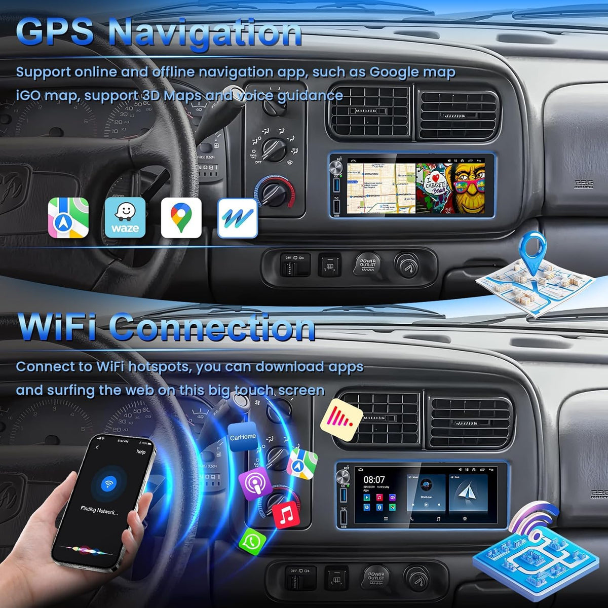 4G+64G Android 13 Car Radio For Dodge & Chrysler & Jeep (1990-2000), 6.2Touch Screen Stereo With Wireless Carplay, Android Aut