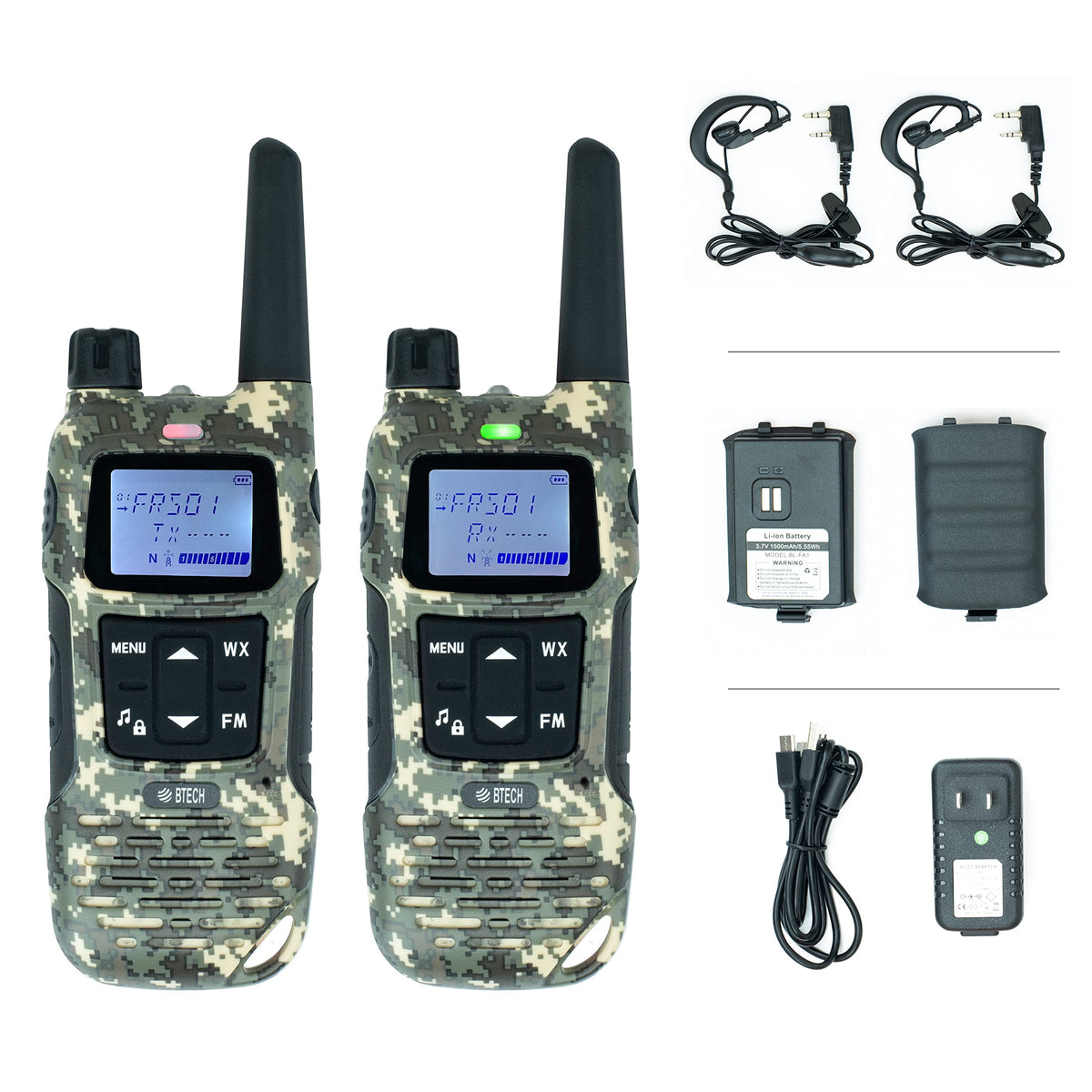 Btech Frs-A1 2 Pack Frs Camo Walkie Talkies, Noaa, High Output Two-Way Radio. Usb-C Charging, Built In Flashlight, Fm Radio, Noa