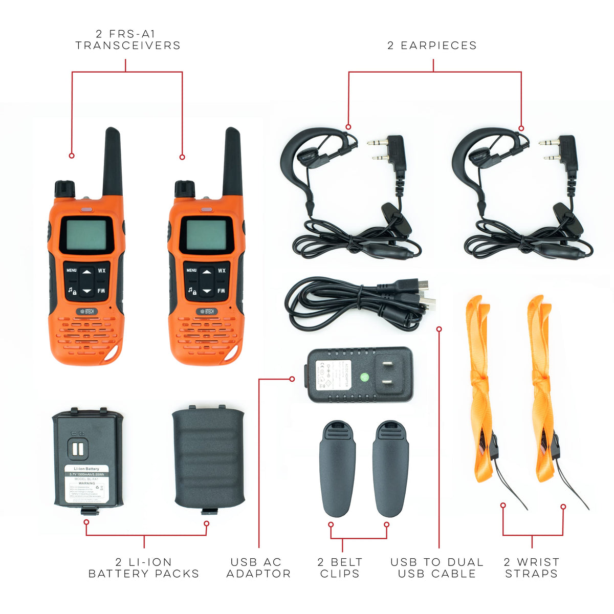 Btech Frs-A1 2 Pack Frs Orange Walkie Talkies, Noaa, High Output Two-Way Radio. Usb-C Charging, Built In Flashlight, Fm Radio, N