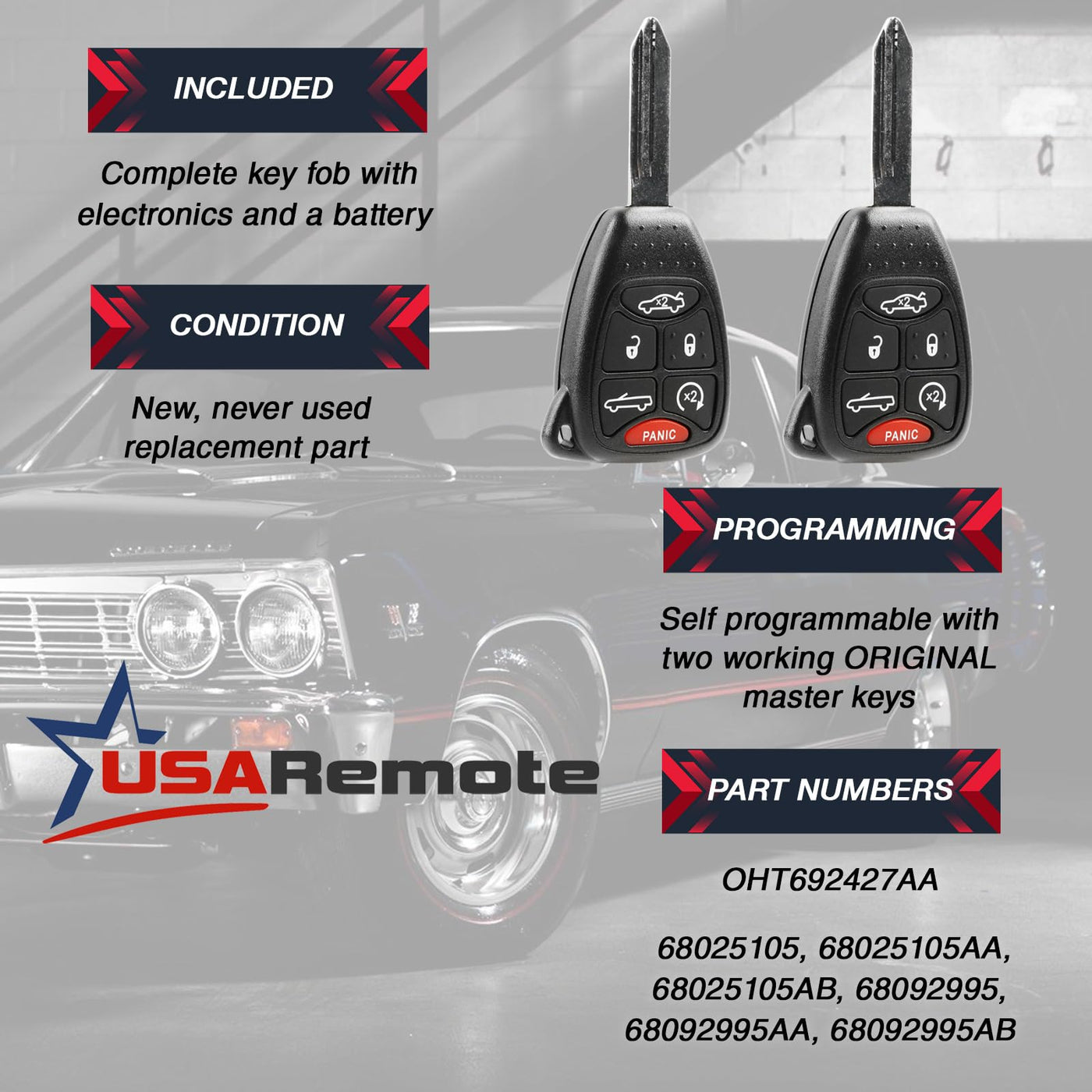 Car Key Fob Keyless Entry Remote Fits 2007-2010 Chrysler Sebring/2011-2014 Chrysler 200 (Oht692427Aa 6-Btn, Set Of 2)