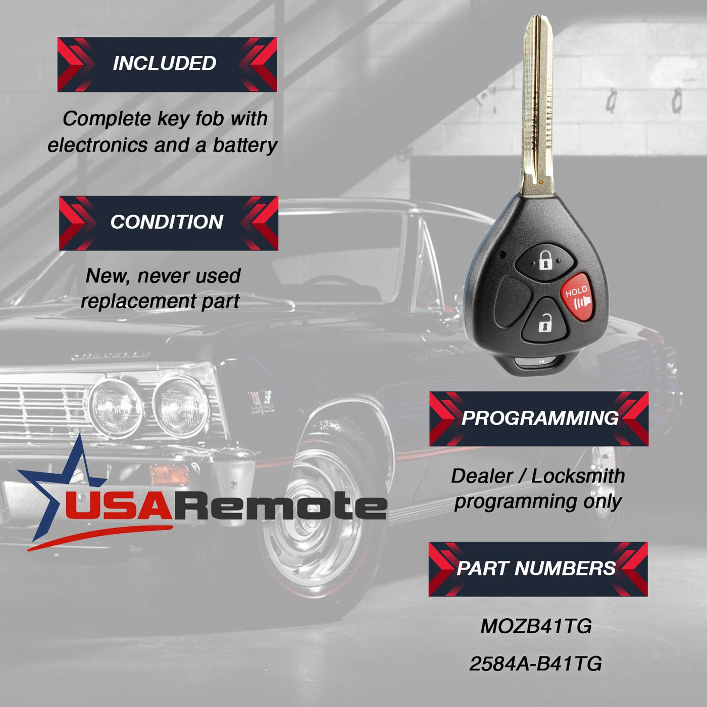 Car Key Fob Keyless Entry Remote Fits Toyota 2007-2013 Yaris, 2005-2010 Scion Tc (Mozb41Tg, 2584A-B41Tg)