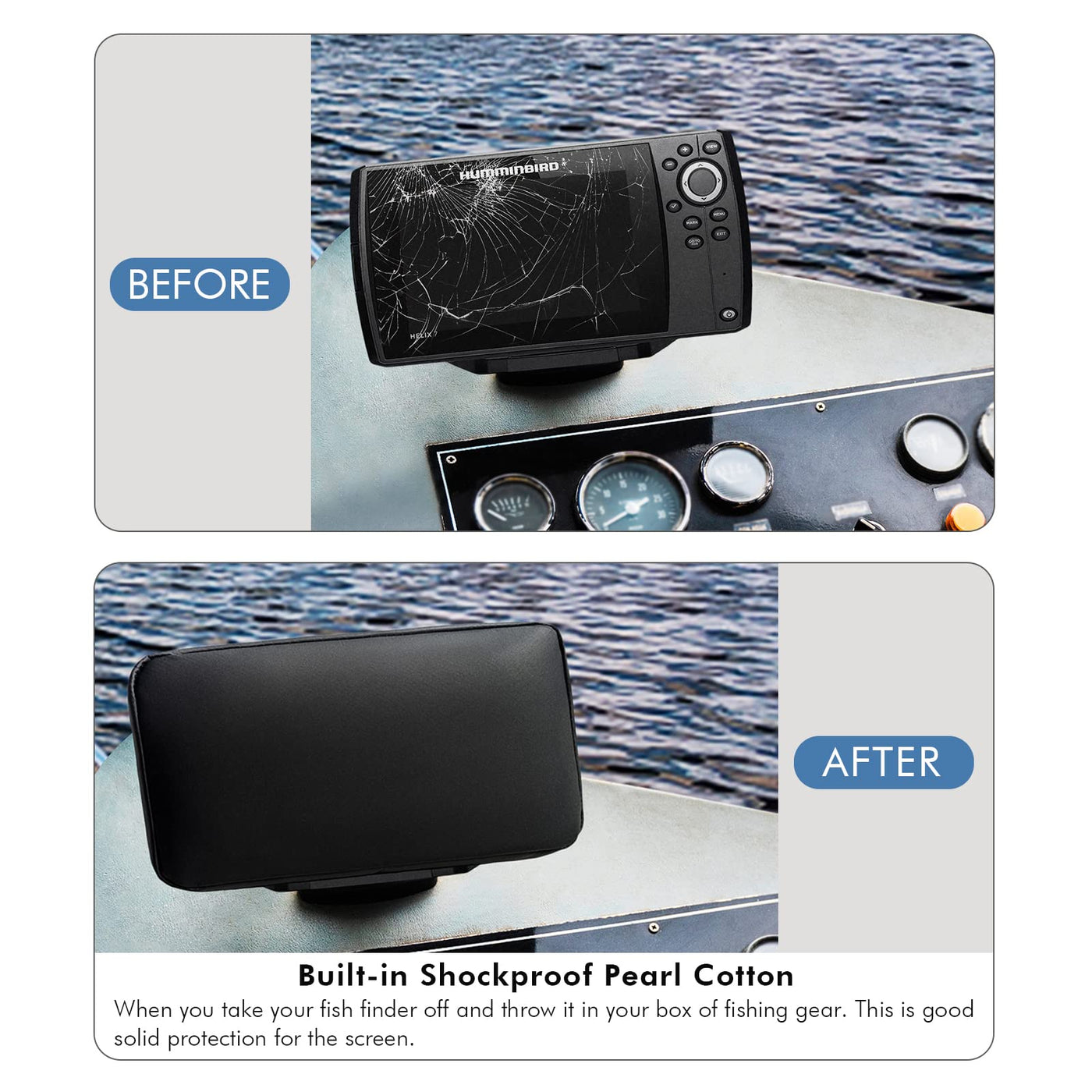 This Fish Finder Cover Can Effectively Protect The Sun, Dust, Rain Damage To The Device. In Addition, There Is A Built-In Anti-Shock Cotton, Can Protect The Screen From Scratches.