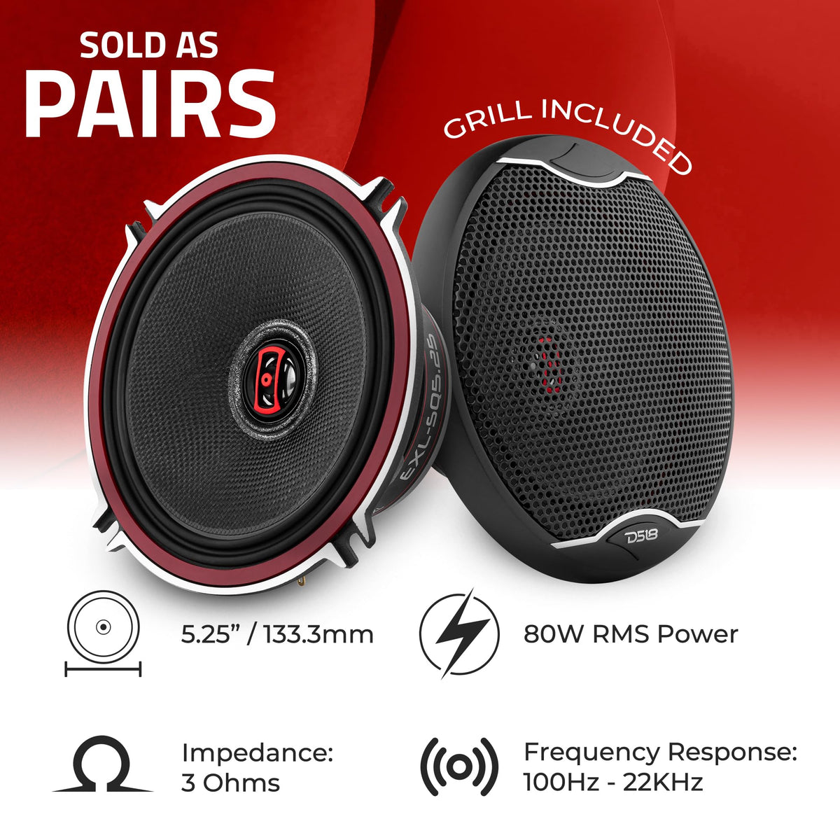 Ds18 Exl-Sq5.25 - Car Speaker 5.25 Inch High Sound Quality Glass Fiber 2 Way 3-Ohms Speaker - Sleek Compact Design With A Chrome