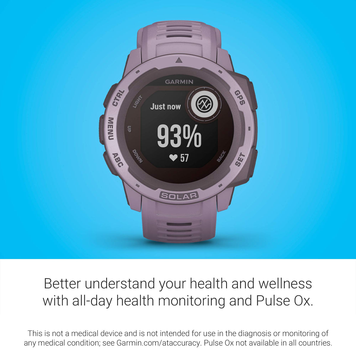 Do What You Love, Longer With Instinct Solar. This Rugged Gps Smart Watch Boasts Solar Charging, Giving Incredible Battery Life In Smart Watch And Expedition Modes While Outdoors. Monitor How Your Body Uses Energy By Tracking Heart Rate, Stress, Estimated Sleep And Pulse Ox (This Is Not A Medical Device And Is Not Intended For Use In The Diagnosis Or Monitoring Of Any Medical Condition), Which Helps Give You A Better Understanding Of Your Health And Wellness. Get More Out Of The Sports You Love With Preloaded Activity Profiles Such As Running, Biking, Swimming And More. Smart Notifications (When Paired With A Compatible Smartphone) At The Wrist Keep You Connected To What Matters. Multiple Global Navigation Satellite Systems (Gps, Glonass And Galileo) Help You Track Wherever Your Adventures Take You.