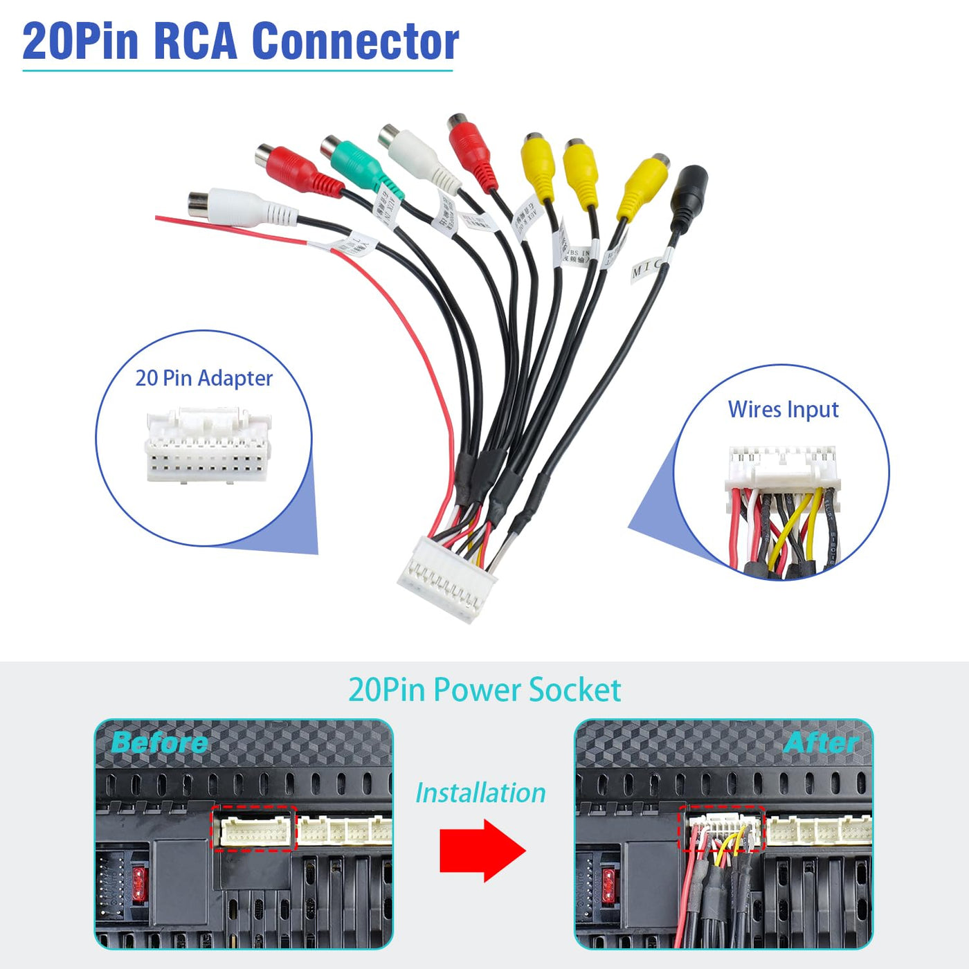 Jayubien Radio Rca Wiring Harness Adapter 20Pin Plug With 9 Female Rca Connector Assembly For Android Car Radio Stereo
