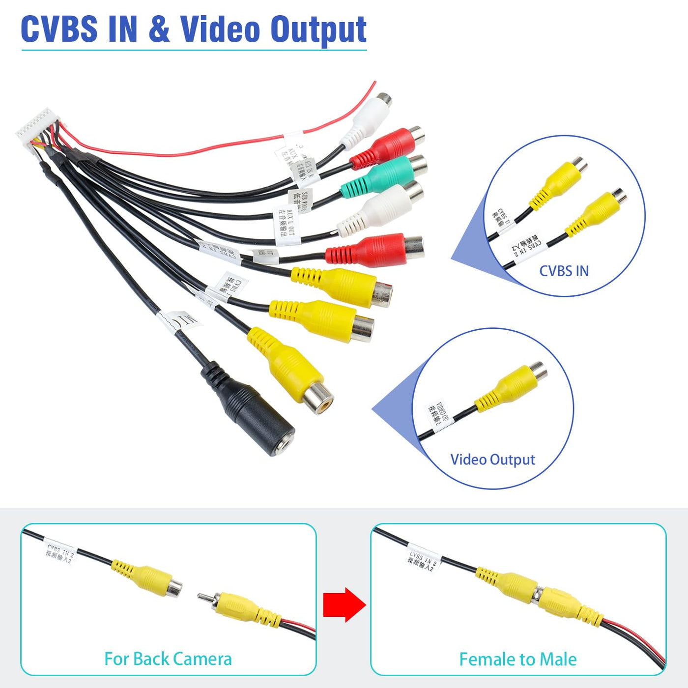 Product Package 1 X 9 Plugs Car Stereo Rca Wiring Harness Wiring Connection Of Car Rca Connector Black: Mic Input, Microphone Input Yellow: Video Output, For Monitor Or Dvr Yellow: Cvbs In 1, For Camera Yellow: Cvbs In 2, For Camera Red: Aux R Out, Aux Right Out White: Aux L Out, Aux Left Out Green: Subwoofer, Sub Output Red: Aux In R, Aux In Right White: Aux In L, Aux In Left Red: Amp-C, Amp Control Wire Jayubien Rca Wiring Harness For Car Radio Work With Select Universal Car Audio Video Players Plug And Play 20 Pin Car Stereo Rca Wiring Harness With Sub X1,Cvbsx2, Videox1, Micx1, Auxx4 Rca Plug Fit For External Microphone, Back Camera,Car Monitor