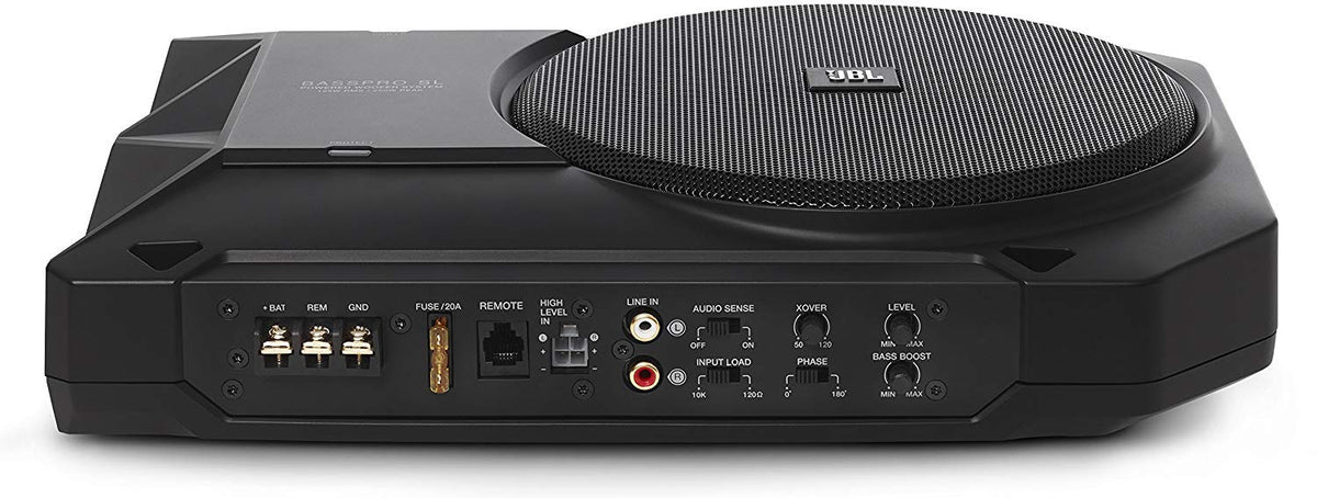 Jbl Basspro Sl 8-Inch Under Seat Subwoofer Enclosure Speaker Amplifier. Soft Start Turn-On, Speaker-Level (High-Level) Inputs With Audio Sense Auto-On.