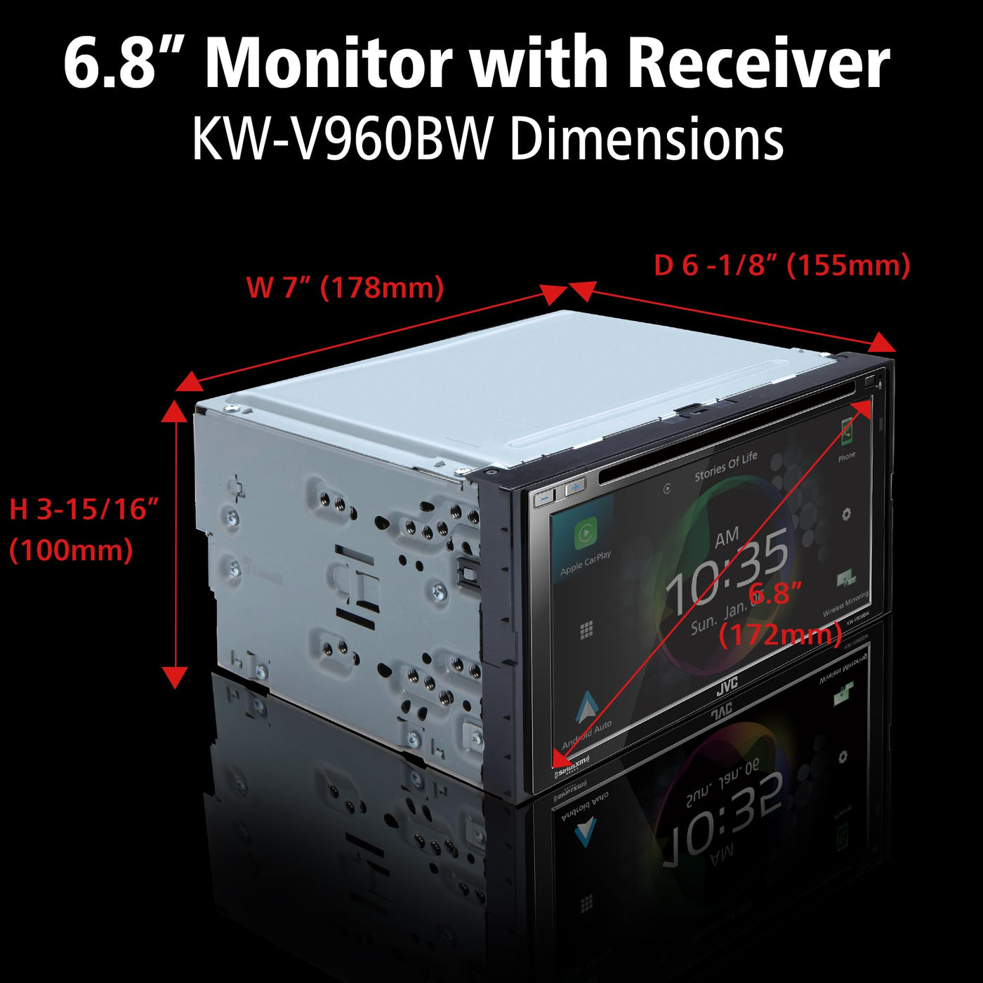 Jvc Kw-V960Bw Built In Wi-Fi For Wireless Carplay Android Auto, Cd/Dvd 6.8 Lcd Touchscreen Display, Am/Fm, Bluetooth, Mp3 Player