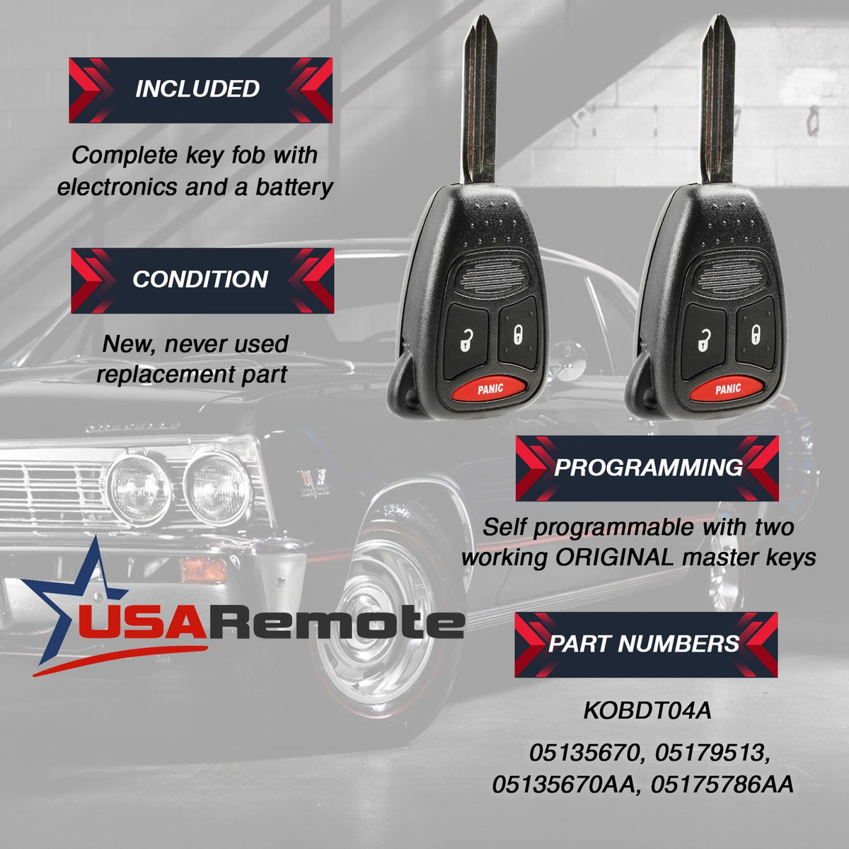 Replace Your Lost Or Broken Keyless Entry Key Fob Remote With A Usaremote Fob. Fits P/N: Kobdt04Adodge:2007-2012 Caliber2004-2010 Dakota2004-2013 Durango2005-2007 Magnum2007-2012 Nitro2006-2009 Ram (Includes 1500, 2500, 3500)Mitsubishi:2006-2009 Raiderthis Is A Replacement Aftermarket Part.
