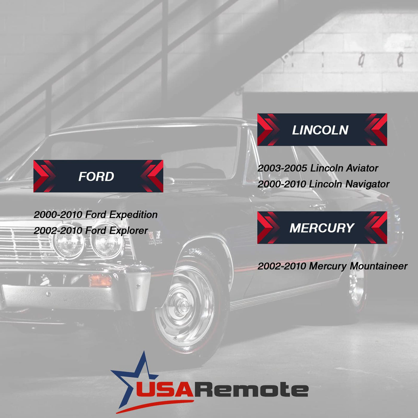 Replace Your Lost Or Broken Keyless Entry Key Fob Remote With A Usaremote Fob.Fits P/N: Cwtwb1U322, 1L2T-15K601-Aa2000-2010 Ford Expedition2002-2010 Ford Explorer2003-2005 Lincoln Aviator2000-2010 Lincoln Navigator2002-2010 Mercury Mountaineer
