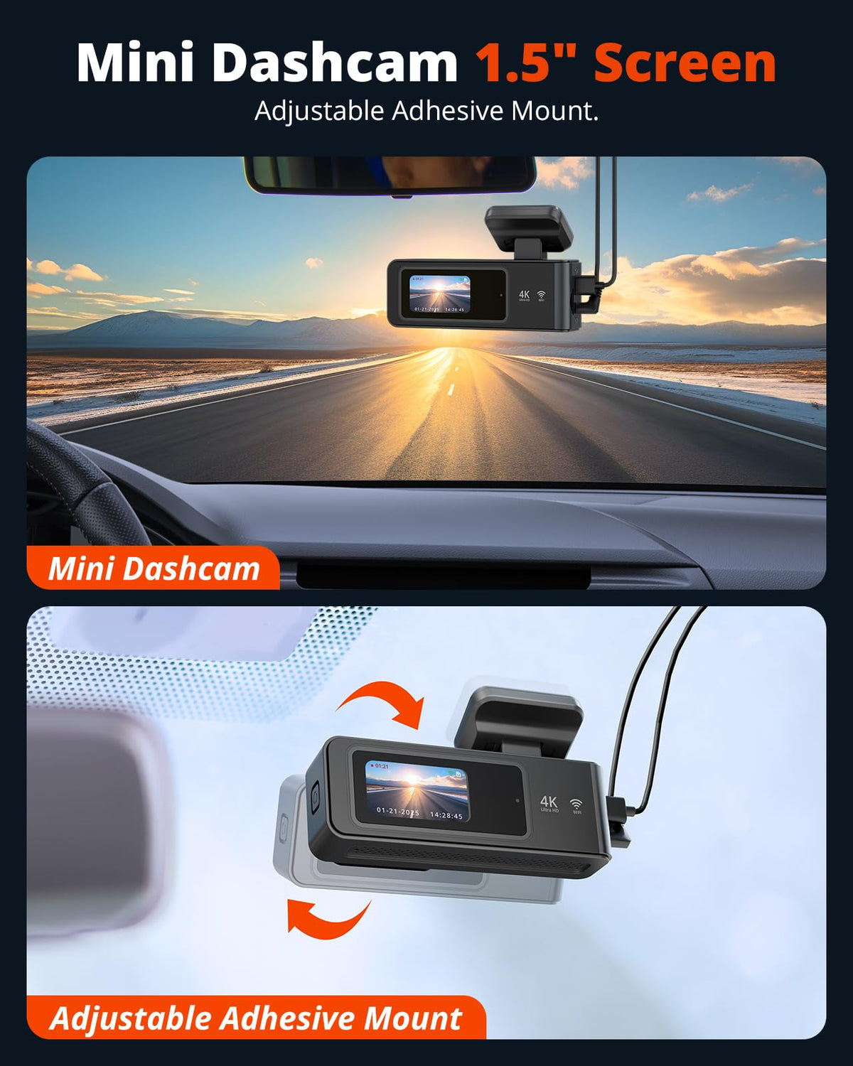 Kingslim 4K Dash Cam Front And Rear With 64Gb Sd Card, 5G Wifi Dash Camera For Cars, 1.5 Screen Dashcam Wireless App Control,
