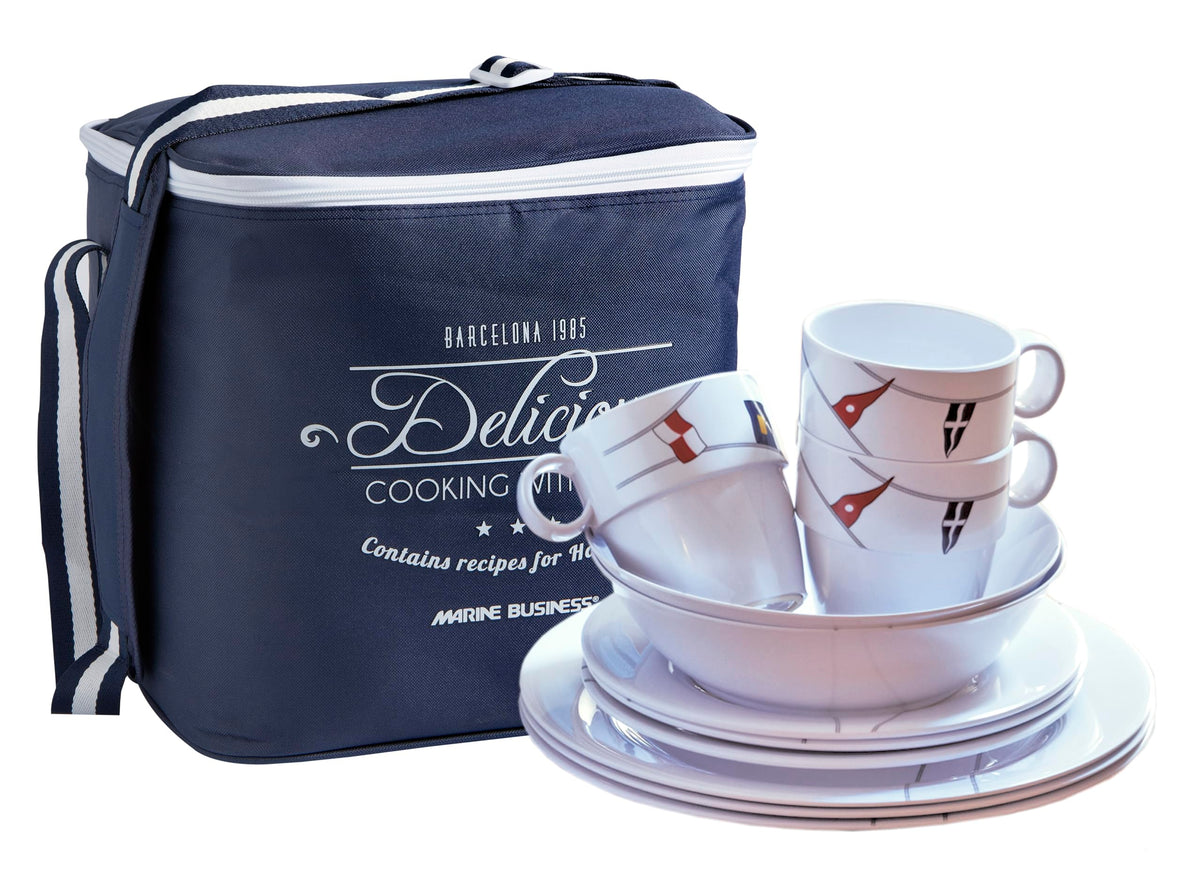 Melamine Tableware &Amp; Basket - Regata - Set Of 16The 16 Piece Regata Melamine Tableware Pack For Boats Is Practical Melamine Set For 4 People.It Is Made Up Of 4 Dinner Plates, 4 Dessert Plates, 4 Soup Bowls, And 4 Stackable Mugs.All The Pieces Are Made From Unbreakable Melamine And Go In A Multi-Use Basket That Can Be Used To Keep The Tableware Or To Keep Pulleys, Rope, Shoes, Or Other Nautical Accessories.All The Pieces May Be Purchased Separately. Also Available The Tableware Set Of 24 Pieces For 6 People.Features:Non-Slipbpa Freebreak Resistantdishwasher Safe100% Top Melaminemicrowave Safeusage:Melamine Products Are Designed For Eating, Not Cooking. Not For Use In The Oven Or Microwave. Suitable For Dishwashers. To Preserve Their Shine, Avoid Using Abrasive Detergents. To Prevent Stains Caused By Tea Or Coffee, We Recommend Washing The Cups Immediately After Use. Any Design Irregularities And Differences In These Irregularities Are Part Of The Production Process And Should Not Be Considered Design Faults.Basket: Hand Wash. Do Not Use Bleach. Not Suitable For Washing Machine. Do Not Use A Dryer. Not Suitable For Ironing.