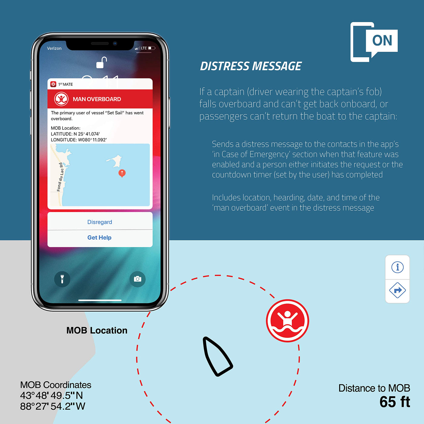 The 1St Mate System Is The Industrys First Engine-Integrated Intelligent Hub And Wearable Device That Integrates With Marine Propulsion Systems To Provide Safety Alerts And Information. The Main Features Of 1St Mate Include: (1) Man Overboard Monitoring For Captain And Up To 7 Passengers; (2) Distress Message Capability; And (3) Theft Deterrent Functionality. This Kit Works With All Leading Engine Brands (Single Engine Only) And Includes The Vessel Hub, Harness & Captain Fob, An Adjustable Wristband And Carabiner Clip. The Passenger Fobs And Wearables Are Sold Separately.The New Standard In Marine Safety And Security, 1St Mate Adds Another Layer Of Boating Safety By Notifying A Boats Captain Or Its Passengers If Someone Has Fallen Overboard. 1St Mate Also Serves As An Effective Deterrent To Boat-And-Engine Theft.