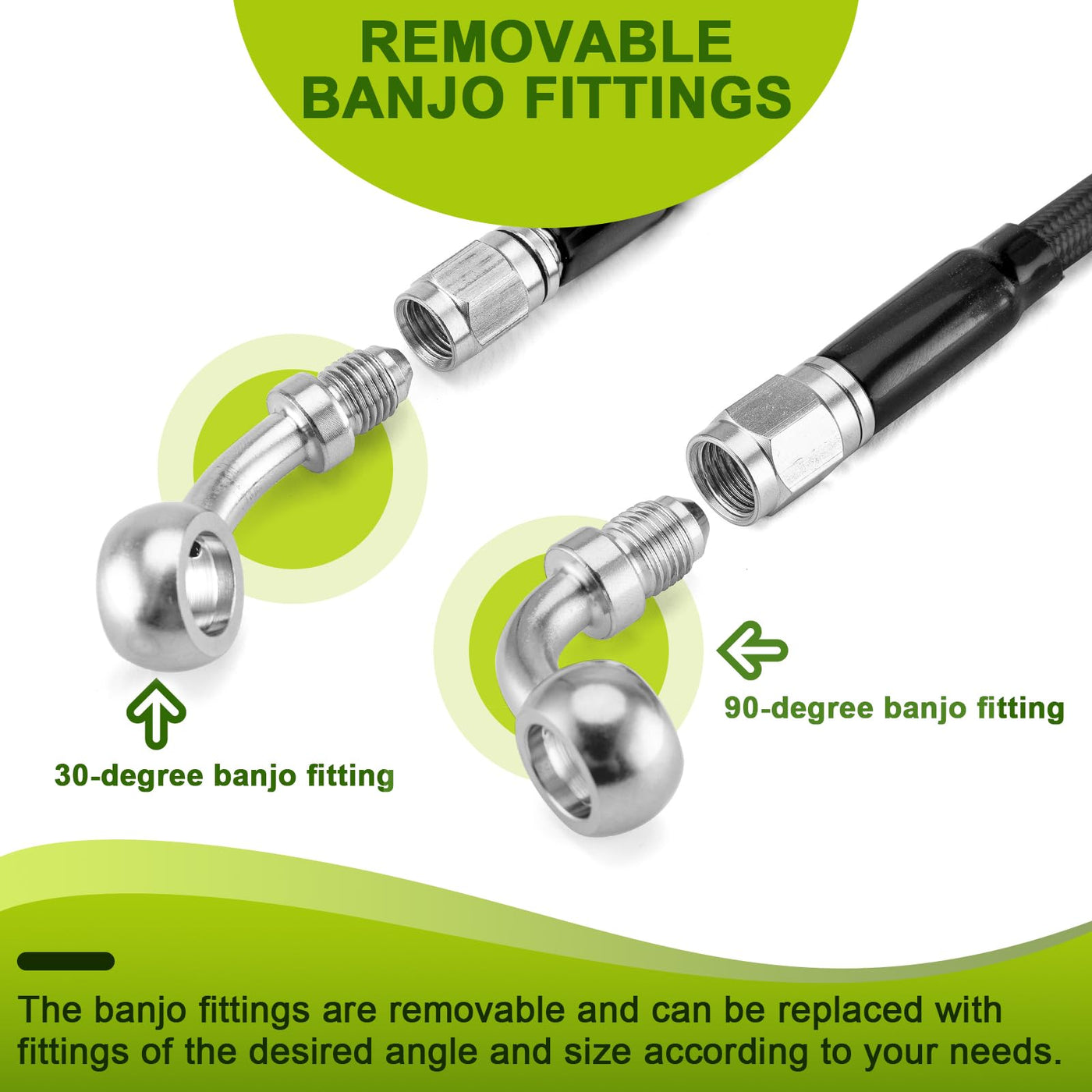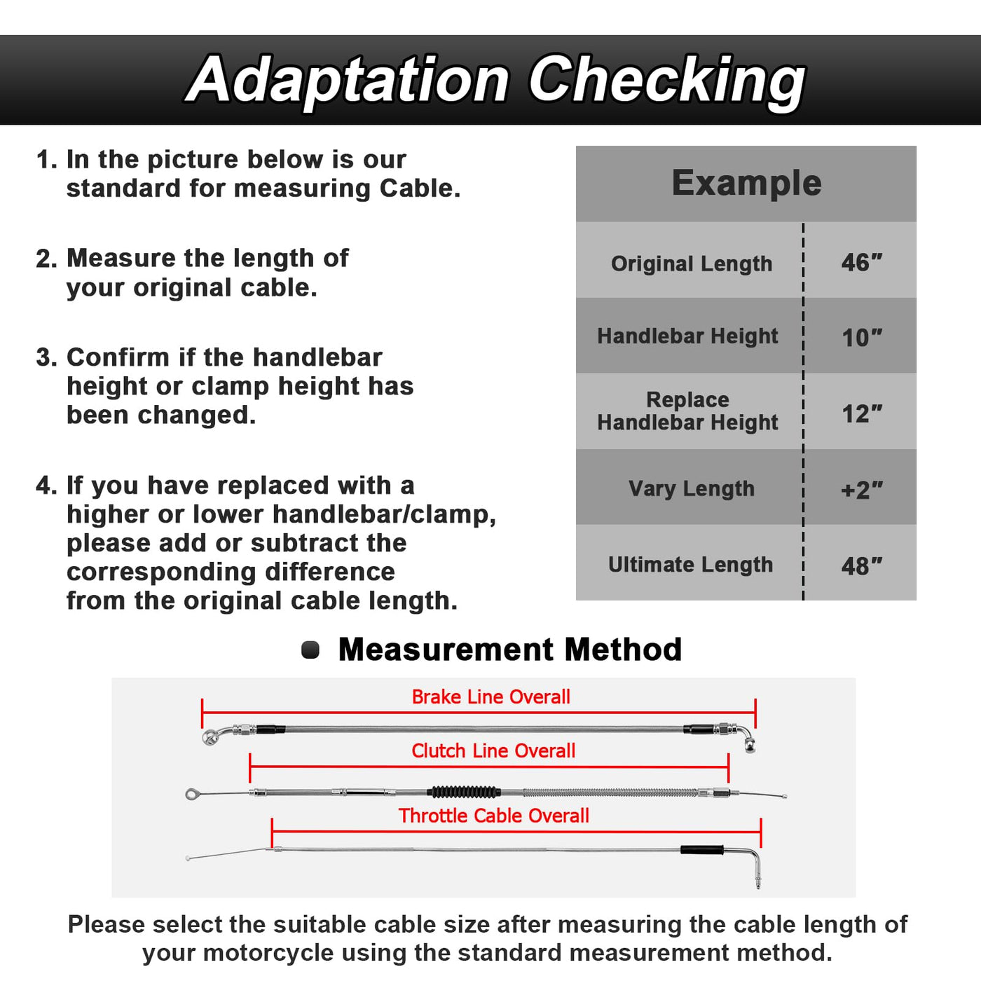 Fitment: Note: Different Handlebar Heights For Different Sportster Models Used On 16-18 Handlebar, Applicable Models: Compatible With Sportster Superlow Xl883L 2014-2020 Compatible With Sportster 883 Iron Xl883N 2009-2022 Compatible With Sportster Superlow 1200T Xl1200T 2014-1017 Used On 12-14 Handlebar, Applicable Models Compatible With Sportster Xl883 2004-2009 Compatible With Sportster 883 Iron Xl883N 2009-2022 Compatible With Sportster Forty-Eight Xl1200X 2010-2018 Not Fit Sportster 883R/1200R Specifications: Color: Black Overall Length: 48(1219Mm) Outer Transparent Tube Material: Pvc Outer Tube Material: Polished Stainless Steel Preparation Inner Tube Material: Teflon(Ptfe, Temperature Resistance From -70C To 260C) Replace For Part Number: 46400-04?45449-04C?46400-04?41800172 Package Included: 1 X Stainless Steel Non-Abs Hydraulic Brake Line 1 X 30-Degree Banjo Fitting 1 X 90-Degree Banjo Fitting 2 X Banjo Bolt 4 X Copper Crush Washers (No Instructions)