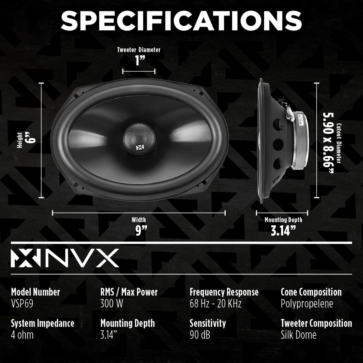 Nvx Vsp69 6X9 Premium Car Speakers, 900W Max, 300W Rms, 2-Way Coaxial W/ 1 Silk Dome Tweeters & Built-In X-Overs, Easy To Instal