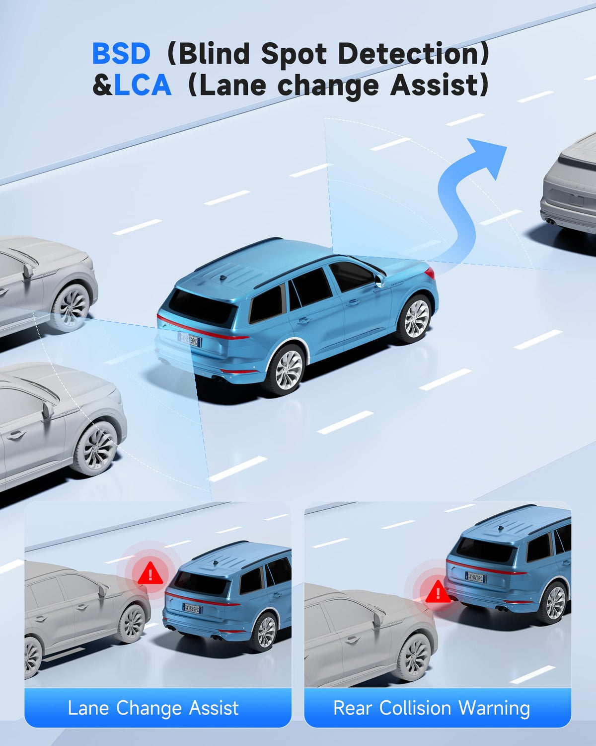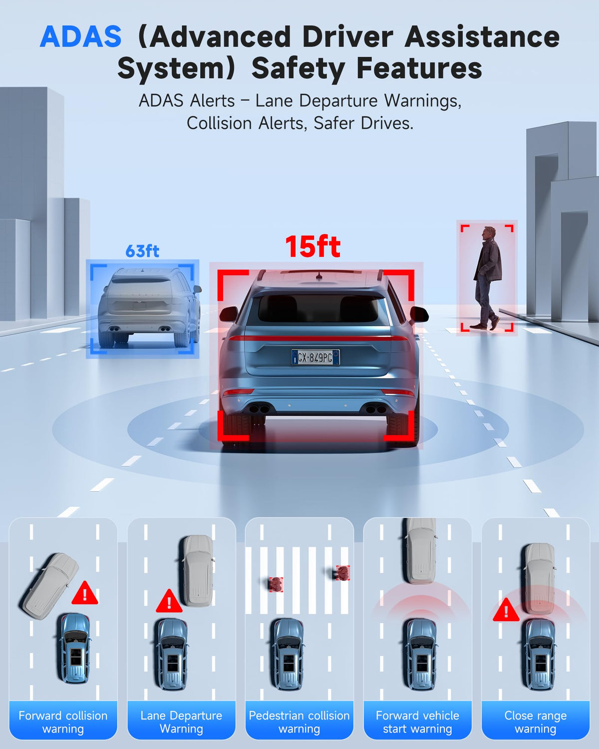 Ombar 4K+2.5K Rear View Mirror Camera With Adas Bsd And Lca, 12 Smart Mirror Dash Cam With 5.8Ghz Wifi, Rearview Mirror Camera W
