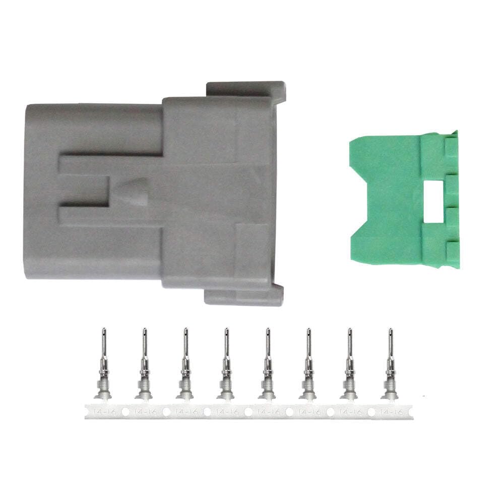 Dt Deutsch Receptacle Repair Kit - 14-18 Awg (8 Position)Pacer'S Dt Repair Kits Use The Larger Size 16 Contacts (Deutsch Pin P/N 0460-215-16141, Socket P/N 0462-209-16141) For Applications Using 14 Awg Wires. However, Dt Series Connectors Are Designed For 18-14 Wire Gauge Applications. The Dt Series Offers Electrical Designers The Ability To Use Multiple Sizes Of 16 Contacts (18-14 Awg) Each With A 13-Amp Continuous Capacity, Within A Single Shell. Pacer Also Sells These Other Components For Use In A Wider Range Of Applications.Features:Packs Include All Parts Needed To Assemble A Connectorone To Two Extra Terminalscavity Plugs To Seal Open Circuitsapplications:Wire-To-Wire Applicationsenclosed Connectors Offer Field-Proven Reliability And Rugged Qualitycompliances:Ingress Protection (Ip) Level: Ip68 And Ip6K9Keu Rohs/Elvstandard Ul-94 Recognizedcharacteristics:Wedge Locks Ensure Contact Alignment And Retentionredundant Silicone Sealshand-Insertable And Removable Contactstechnical Specifications:Number Of Cavities: 8Housing: Rectangular Receptacle, Plastic Reinforced With Glass Fibercontact Size: 16 (13 Amp)Wire Size: 14 Awgholds Pin/Socket: Pinsoperating Temperature: -55&Deg;C To 125&Deg;Ccontents:&Nbsp;(1) 8 Pos. Receptacle(1) 8 Pos. Wedge Lock(10) Pins(4) Cavity Plugs