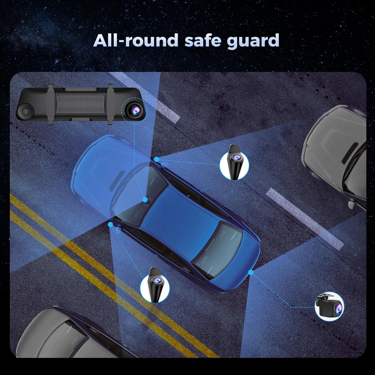 Pruveeo12 Rear View Mirror Camera ,360 View 4 Channel Mirror Dash Cam Detached Camera Fhd1080Px4,Dash Cam Front And Rear And Side(Left,Right) ,Night Vision,Gps,Parking Monitor,Free 128Gb Card