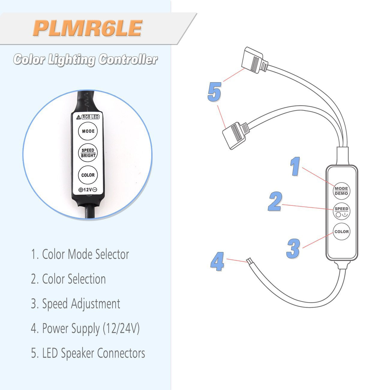 He Pyle Hydra Waterpoof 6.5 Speakers Feature Built-In Multi-Color Led Lights. Upgrade Your Audio By Adding An Exciting Visual Treat For Your Eyes As Well As Crisp Stereo Sounds For Your Ears. The System Features An Integrated Remote Control That Allows You To Program Your Lights -- Making Adjustments To Dancing, Flashing, Color, Brightness And Speed Modes. The Hydra Speakers Serve As Standard Oem Replacement Speakers For A Quick Swap And The Marine Grade Waterproof Construction Makes Them Perfect For Any Of Your Marine Vehicle Or Automobile Needs. Additional Features Include Full Range Sound Reproduction, 150 Watt Output Power, Rugged Polypropylene Cones And Weather Resistant Abs Molded Baskets. Add Vivid Sound And Dynamic Color To Your Audio System With The Pyle Hydra Waterproof Speakers. (Available In Black And White, Models: Plmr6Leb, Plmr6Lew). Features: Includes (2) Dual Cone Speakers Built-In Color-Changing Led Lights Programmable & Controllable Lighting Waterproof Construction Housing Full Range Sound Reproduction Polypropylene Cones With Cloth Surround Stain Resistant Grill Molded Abs Plastic Basket Includes Speaker Wiring & Mounting Hardware Used In Marine Vehicles Or Automobiles Perfect For Custom Installationstechnical Specs: Speaker Size: 6.5 -Each Power Handling: 150 Watts Peak Marine Grade Ip-44 Rating 4 Ohms Impedance 8 Oz. Circuit Magnet 1 Aluminum Voice Coil Sensitivity: 90Db Frequency Response: 45Hz - 16Khz Led Output: 4A/Per Channel Power: Dc 12-24V Weight (Each Speaker): 1.5 Lbs. -Eachcolor-Changing Led Lights: Dancing / Flashing Light Modes 20 Static Or 19 Dynamic Color Modes Speed & Color Brightness Adjustable 27 Built-In Multi-Color Led Lights Includes Lighting Console Controller Unitsize / Dimensions: Total Diameter: 7.1, Total Depth: 3.3 Cut-Out Diameter: 5.3 Mounting Depth: 2.5
