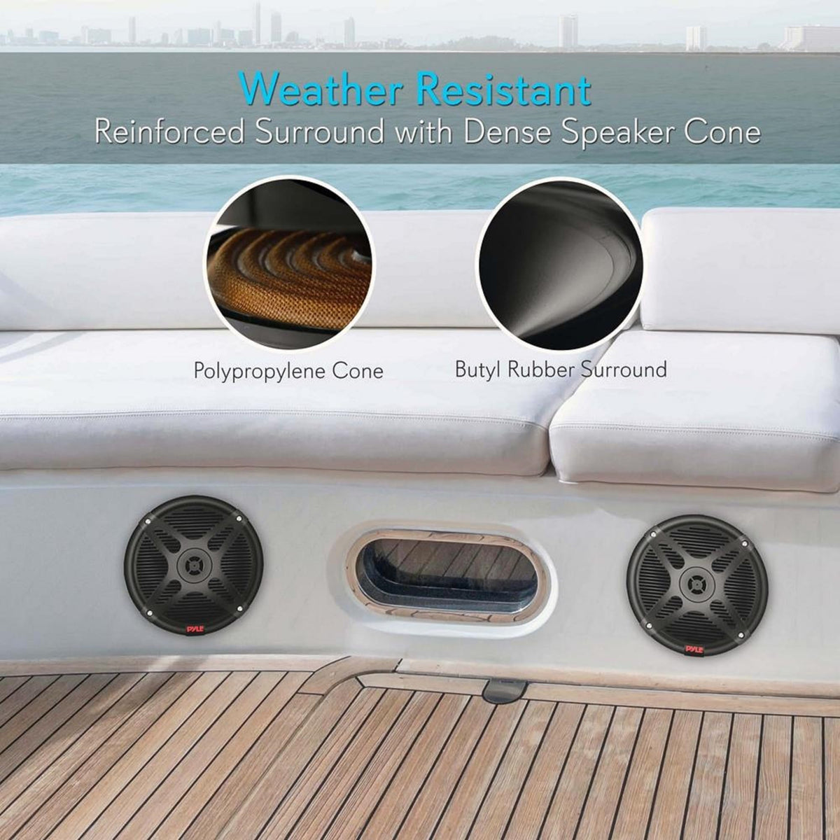 Pyle Dual 6.5 Water-Resistant Marine Speakers - 2-Way Ip-X4 Weather Resistant Outdoor Audio Dual Stereo Sound System With 600 Wa