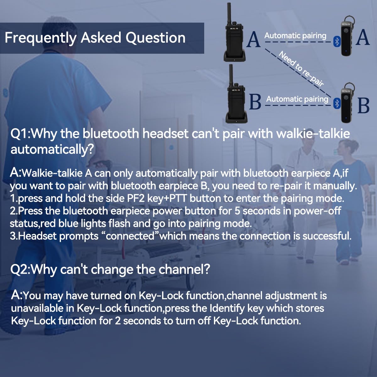 Features: Bluetooth Wireless Connection Powerful Torch Light Alarm Function Vox Vox Delay Function Key Locks Tot Type-C Charger; Package Includes: 4 X Two Way Radio 4 X Bluetooth Headset 4 X Ear Hook 4 X Silica Gel Cover 4 X Battery 4 X Charger 4 X Type-C Charging Cable 4 X Belt Clip 4 X Users Manual 4 X Lanyard