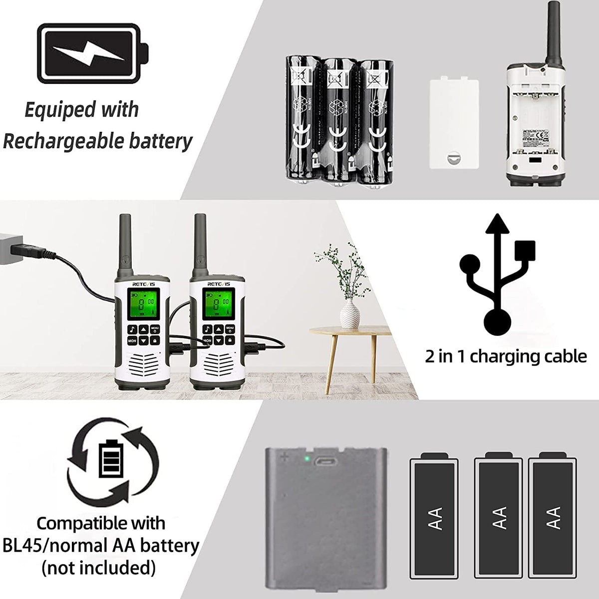 Retevis Rt45 Long Range Walkie Talkies, Walkie Talkie For Adults, 22 Channels Noaa Flashlight Vox, Rechargeable Two Way Radio, P