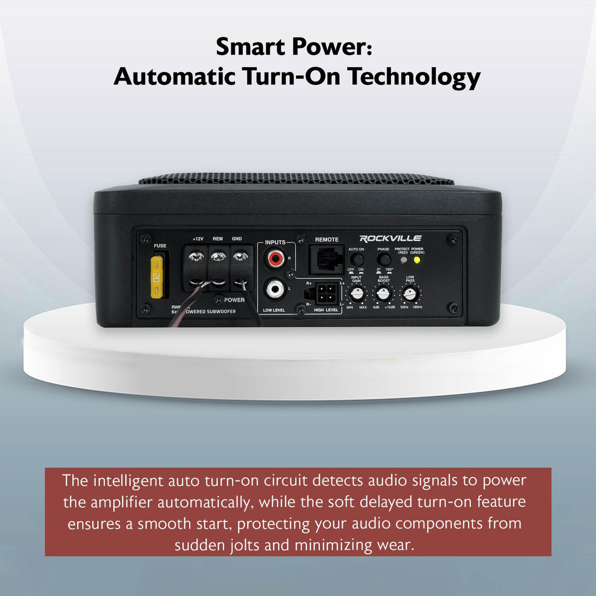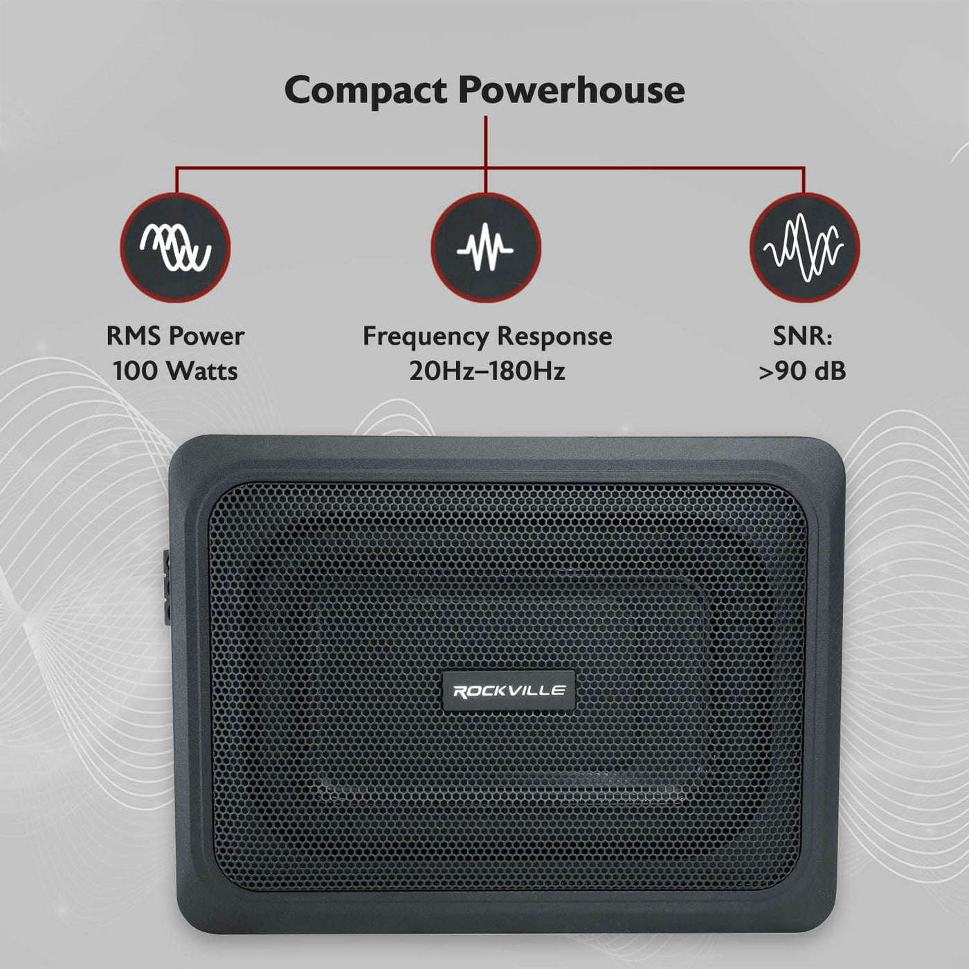 Rockville Rw68Ca 400W 6X8 Slim Under-Seat Active Car Subwoofer, 4 Ohm, Built-In Amplifier, Remote Bass Control, Cast Aluminum En
