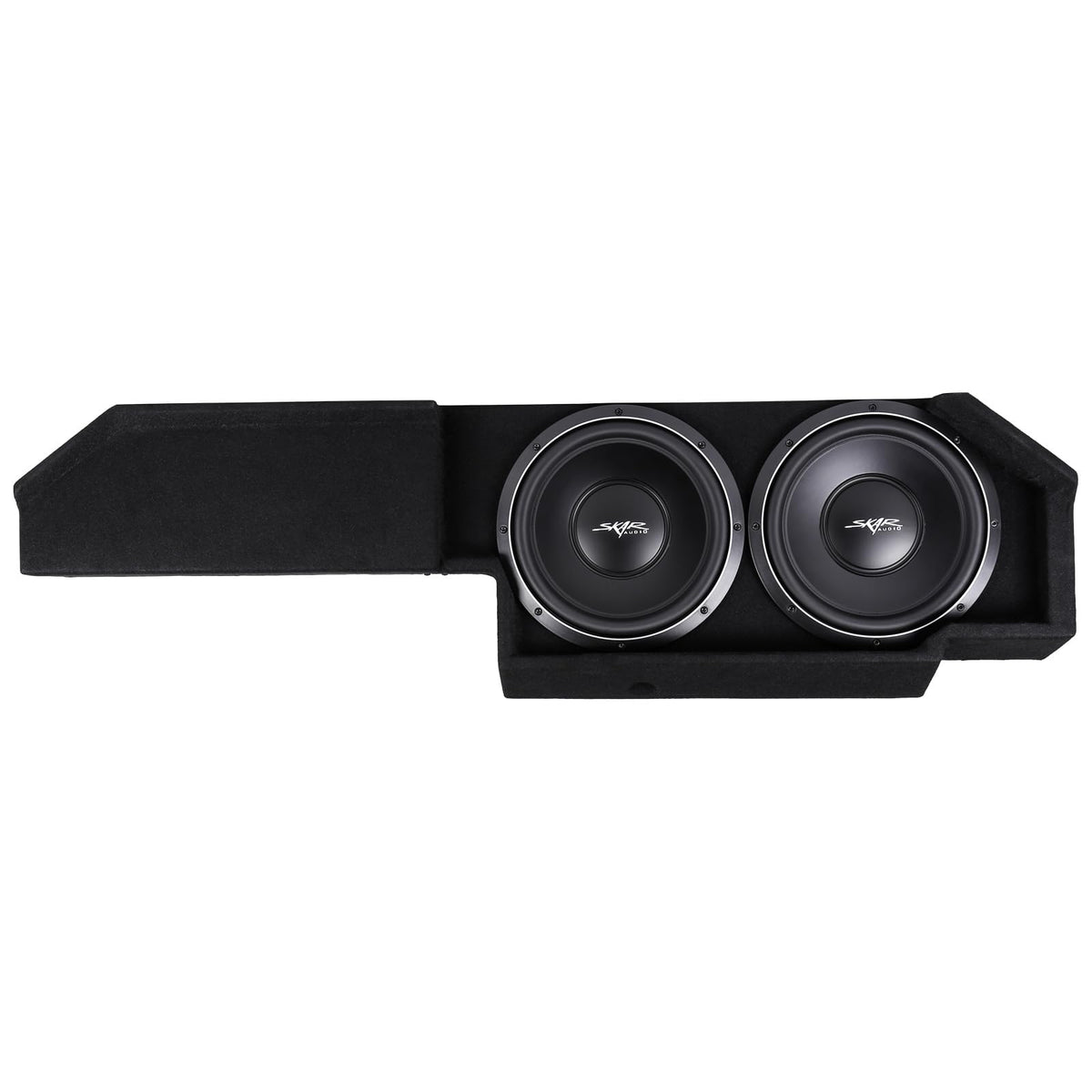 Skar Audio Has Designed A Custom-Fit, Dual 12, 2,000-Watt Loaded Subwoofer Enclosure Specifically For 2019-2025 Chevy Silverado And Gmc Sierra Double Cab Trucks. This All-In-One Setup Saves You Time And Hassle, Providing The Perfect Subwoofer Match In An Easy-To-Install Package, Eliminating The Guesswork For A Seamless Fit. Crafted For An Exact Oem Fit Under The Rear Seat Of The Double Cab, This Enclosure Delivers Massive Bass Without Compromising Any Interior Space-An Ideal Solution For Truck Owners Who Want Powerful Sound Without Sacrificing Practicality. It Includes Two Of Our Shallow Mount Vs-12, 1,000-Watt Max Power Subwoofers, Pre-Loaded And Wired To Deliver A 1-Ohm Final Impedance Load. (Ensure Your Amplifier Is 1-Ohm Stable, Or Pair It With Our Recommended Rp-1200.1D 1,200-Watt Amplifier.) The Ported, Single Chamber, Down-Firing Design Allows The Subwoofers To Produce Deep, Hard-Hitting Bass While Maintaining Clarity And Responsiveness Across All Low-End Frequencies. Wrapped In Premium Black Trunk-Liner Carpeting, This Enclosure Integrates Smoothly With Your Trucks Interior, Offering A Sleek And Stylish Look.