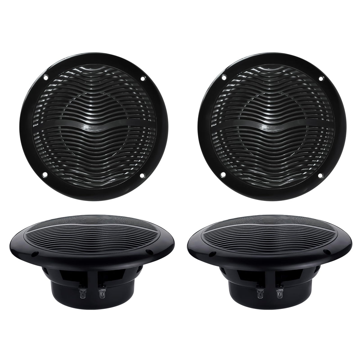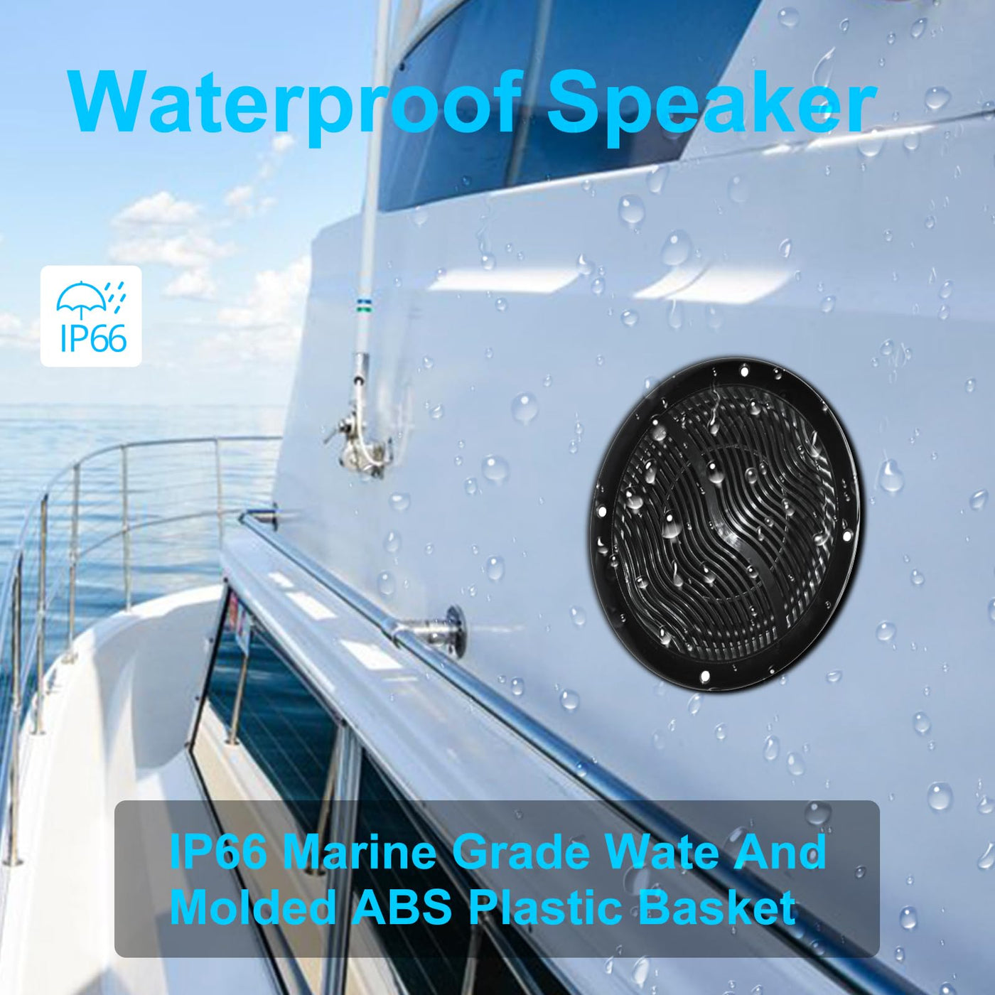 ?High Fidelity Sound?:Studiofinix 6.5 2 Way Marine Speaker Have Full Range Audio Allowing These Speakers Produce A Very Full And Rich Sound That Is Very Hard To Replicate In Open Air Environments.It Is The Perfect Choice If You Are In The Mood To Go Out On A Boat Or Lie On The Deck To Soak Up The Sun And Listen To Music Lazily. | ?Ip66 Marine Grade Water?Studiofinix 6.5-Inch Marine Speaker Have All-Weather Performance Ip66 Marine Grade Water And Weather Proof And Can Withstand Extreme Cold/Hot Temperatures. It Is Also Engineered With Heavy Duty Molded Abs Plastic Basket To Combat Sun Damage. | ?Max Power 240 W?These Waterproof Speakers Have 2 Way Full Range Audio For A Complete Stereo Speaker Sound System. The Power Output Is 240 Watt Max(Each 60).Full Range Stereo Achieve Clear Sound Covering The Entire Audio Spectrum! | ?Installtion And Dimensions?:These Boat Speakers Are Easy To Install With 6.5 Inches Standard Size, Complete Wirings And Mounting Hardware. Low Profile Design And Include Cut-Out Template For Easy Installation That Can Be Easily Installed On Boat Marine Watercraft Utv Atv And Other Vehicles. Cut-Out Diameter: 5.31, Mounting Depth: 2.48. | ?Package Include & Service?:Marine Speakers(Black)*4,Speakers Cables*4, Owners Maunul*1 .Studiofinix Speakers With A 1-Year Warranty. Please Contact Us Any Time If There Has Any Question In Using, We Will Provide Help Within 24 Hours.