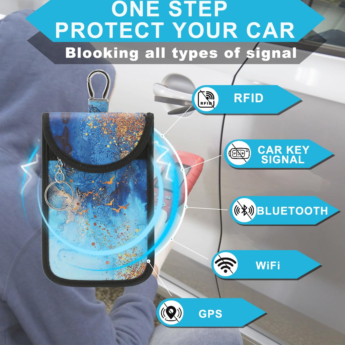 Tildosac 2 Pack Lightweight Faraday Key Fob Protector,Signal Blocking Rfid Key Fob For Car - Blue