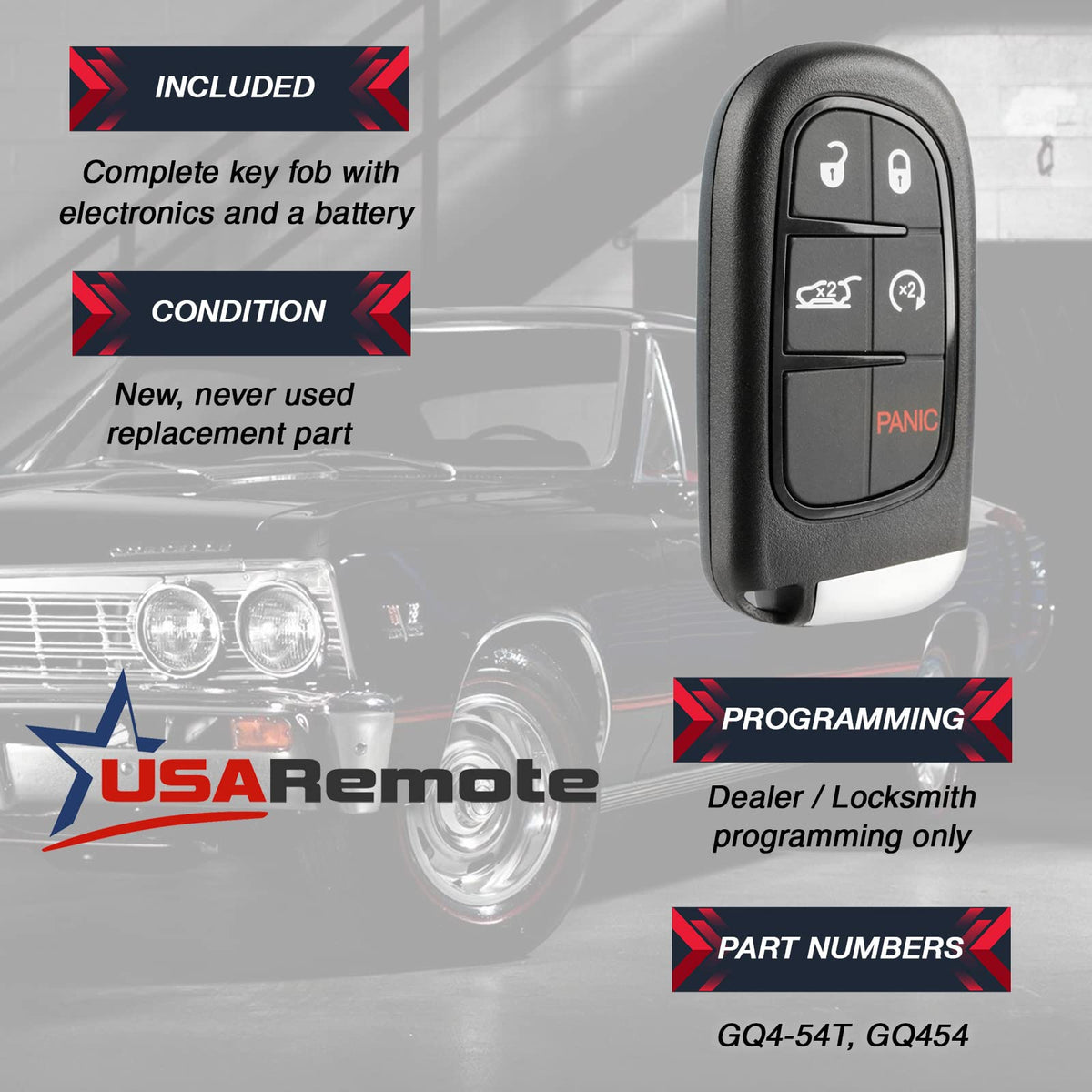 Replace Your Lost Or Broken Keyless Entry Key Fob Remote With A Usaremote Fob.Fits P/N: Gq4-54T, Gq4542014-2019 Jeep Cherokeethis Is A Replacement Aftermarket Part.