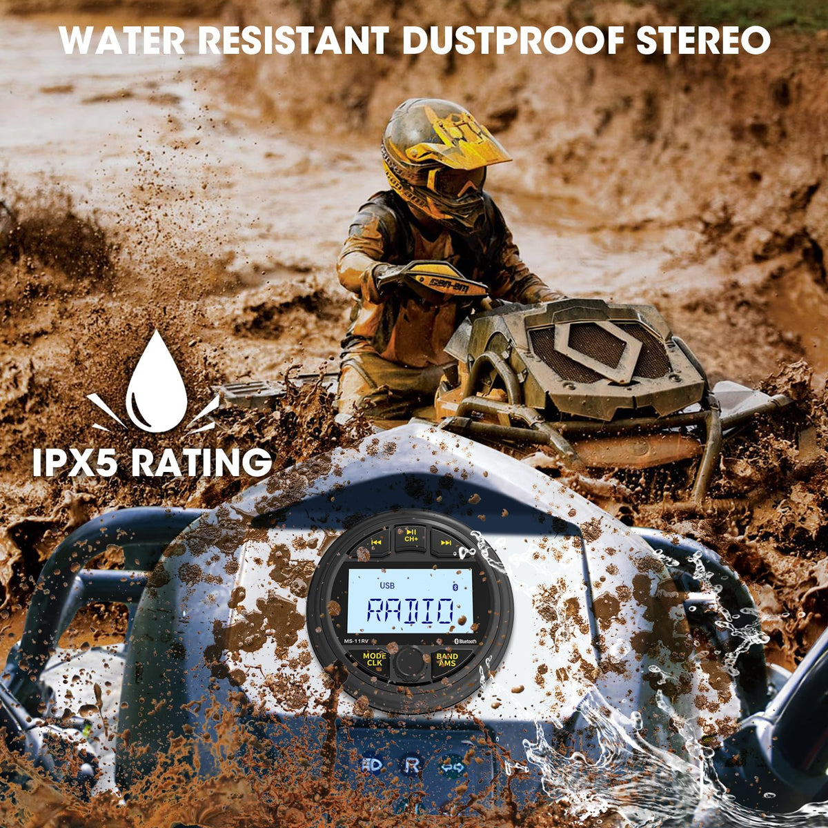 Waterproof Marine Gauge Stereo Receiver - Bluetooth Boat Am Fm Radio - 2.8 Inch Lcd Display Usb Aux-In Subwoofer Pre-Amp 200 Watts Output