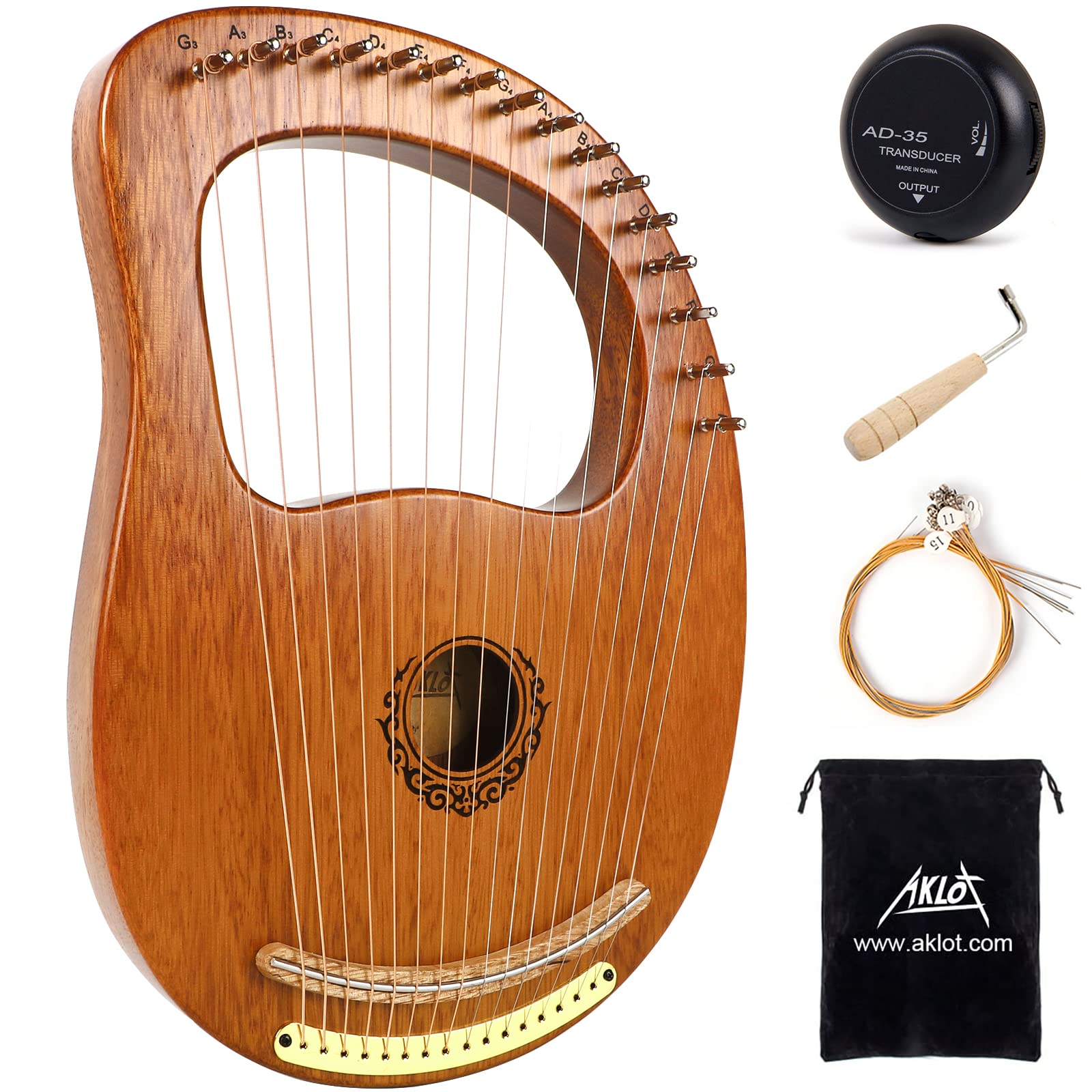 AKLOT 16-String Lyre Harp - Mahogany Body, Maple Saddle, Carved Note Tuning Wrench, Perfect for Musicians and Music Lovers
