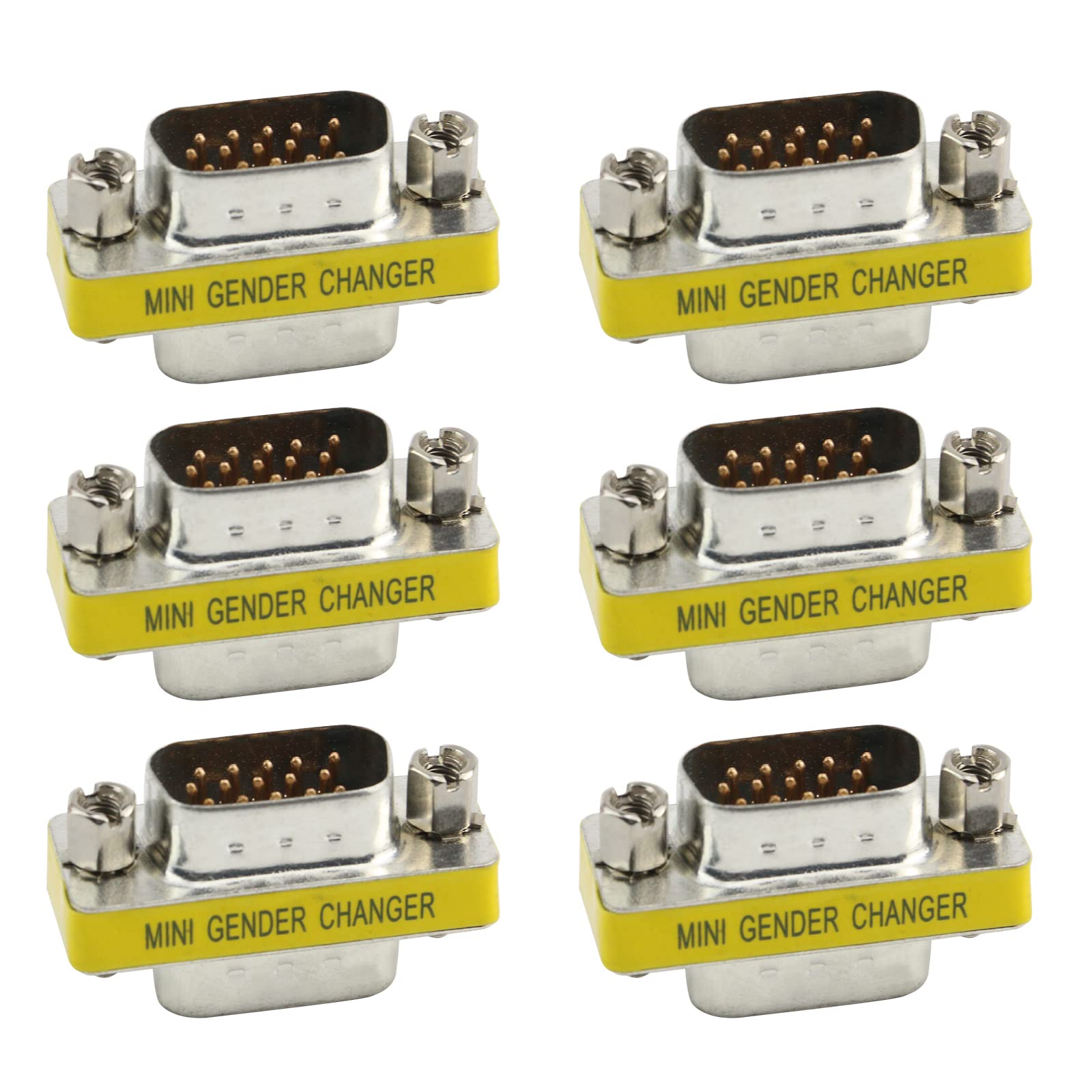 Antrader 6 Pack Db15 Vga Svga Kvm Male To Male Mini Gender Changer Coupler Adapter Connector For Pc