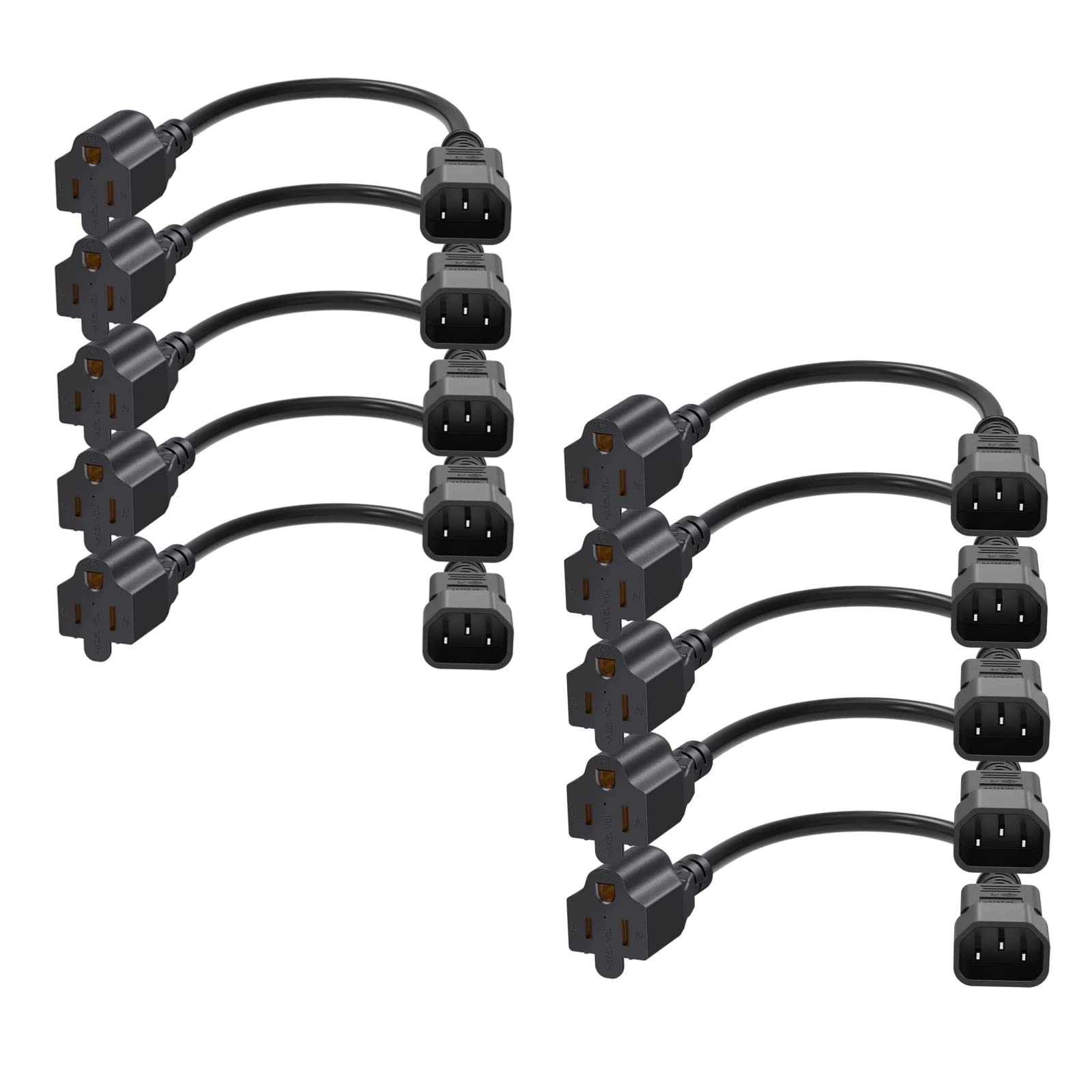 Cablecreation [10-Pack] 1 Foot 18Awg Standard Computer Power Adapter Cord Nema 5-15R Receptacle To Iec320 C14, 0.3M/Black