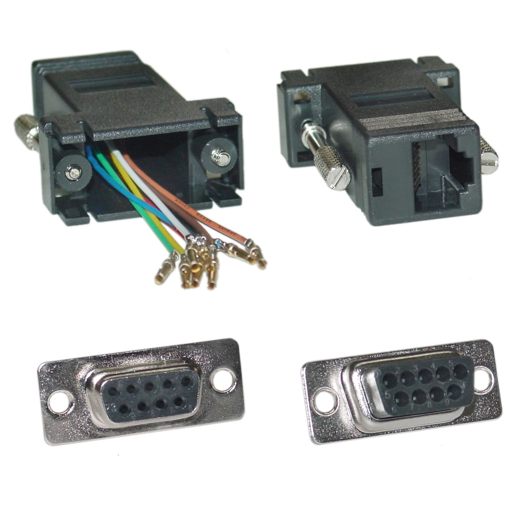 This Black Modular Adapter Converts From A Db9 Female To An Rj45 Socket. By Its Very Nature The Pin Outs Are User Configurable To Match Any Needs You May Have. The Leads Are ''Flying Leads'' To Provide You With More Leeway When Inserting The Pins. A Modular Adapter Is Typically Used To Traverse Log Distances Over A 8 Conductor Phone Line / Network Cable.
