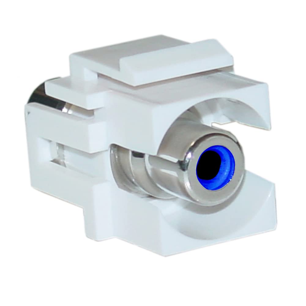 This White Keystone Jack With Blue Rca Coupler Is For Use With Audio/Video (Component Video), And Home Theater Applications. It Is Designed For Use With All Keystone Style Wall Plates And Standard Rca Cables. Attach Any Rca-Connector Equipment Or Cables With Ease And Simplicity. Blue Is Usually Used For Component Rgb Video.