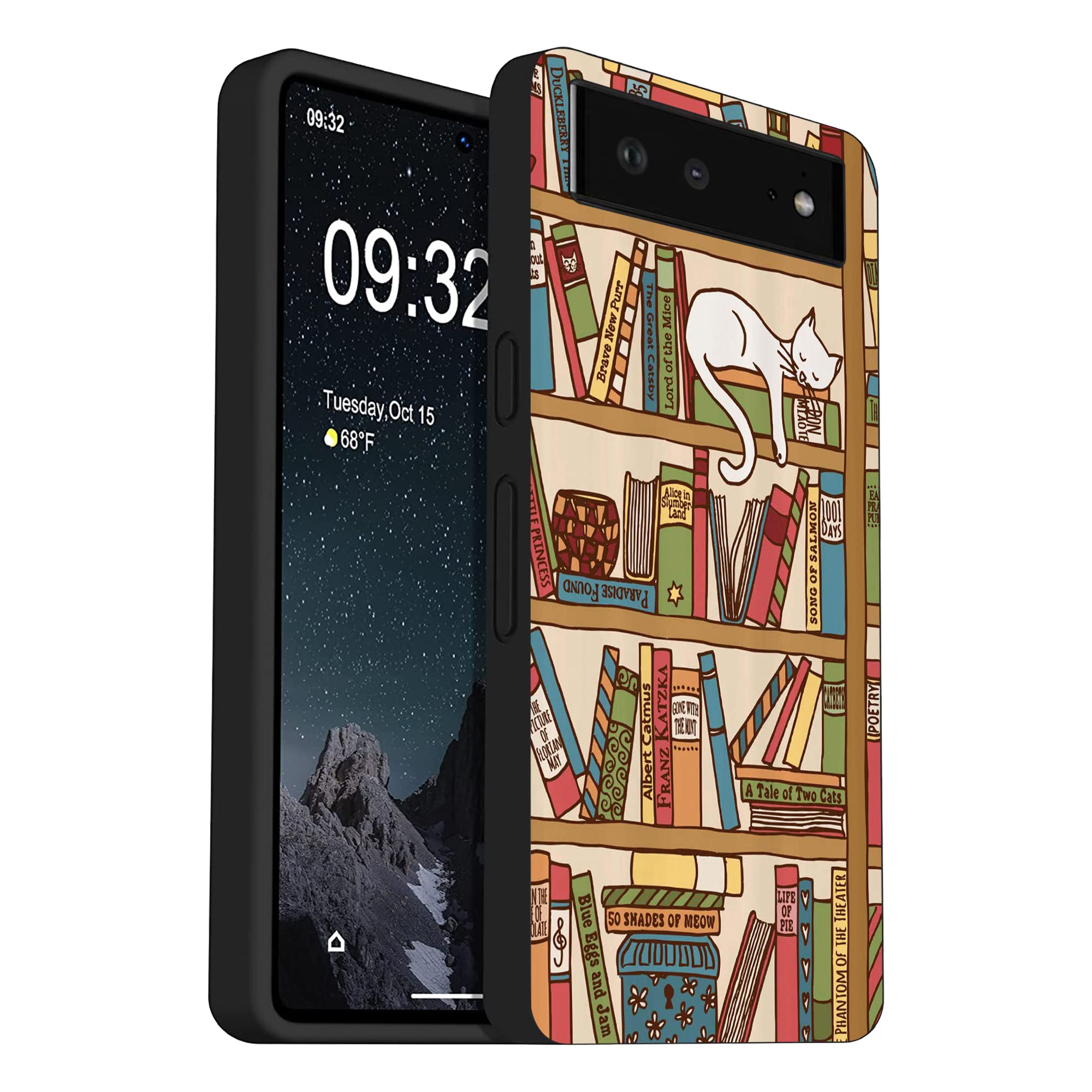 Compatible With Google Pixel 6 Pro Case, Funny Cute Cat Bookshelf Cartoon Slim Fit Soft Tpu Shockproof Protective Cover Case Gif
